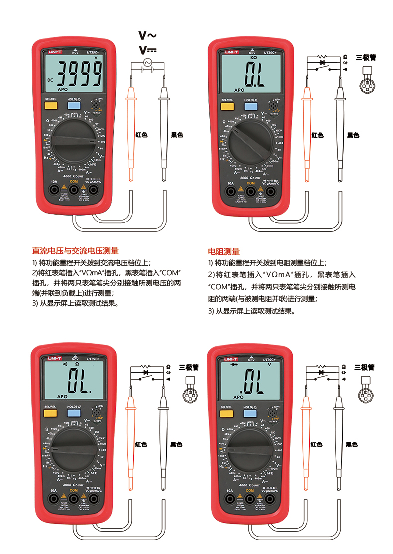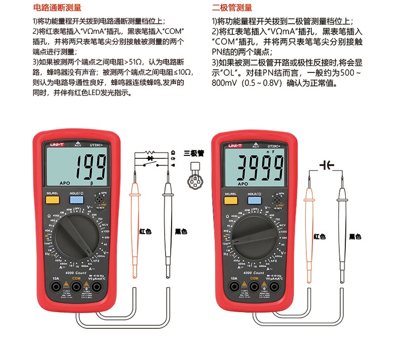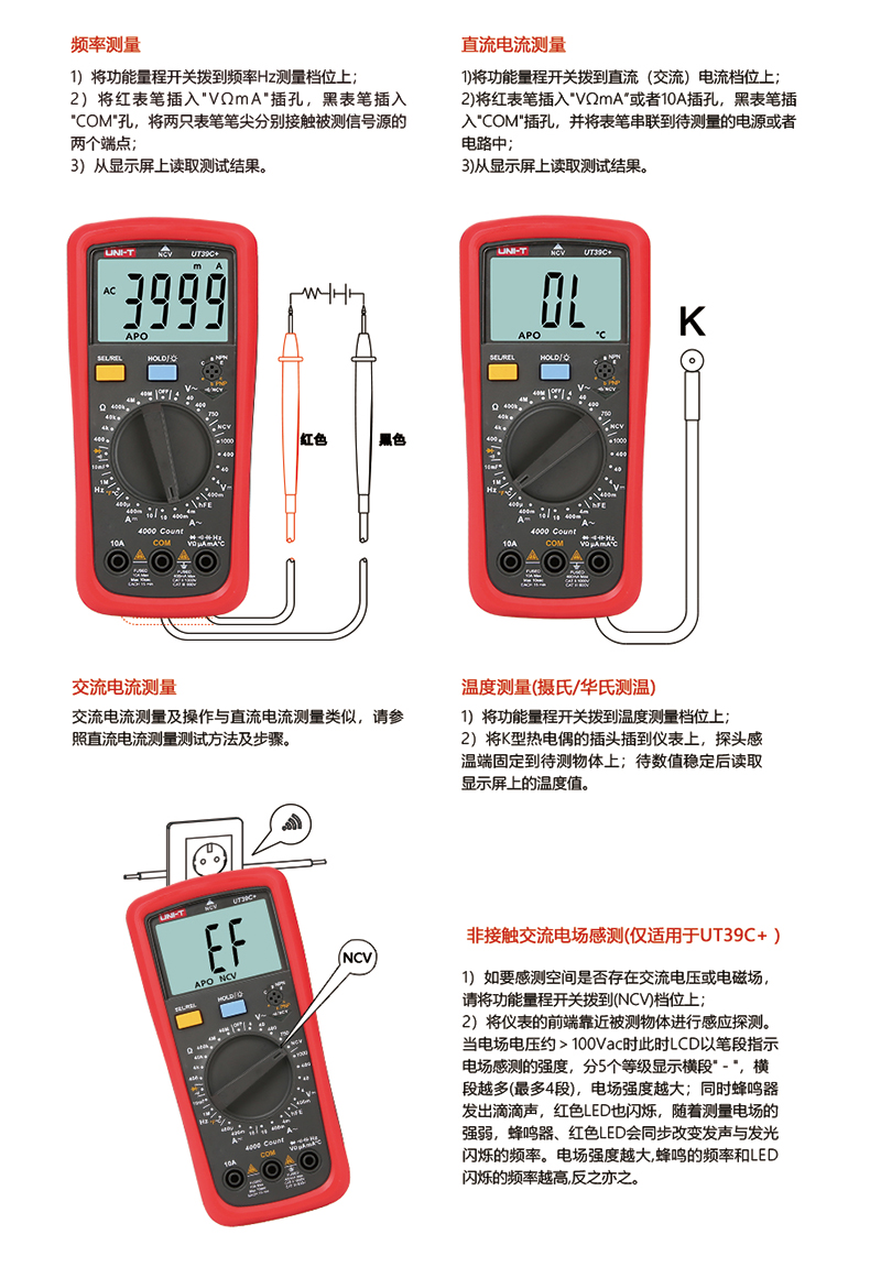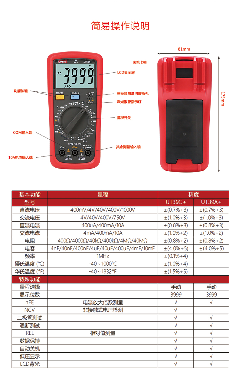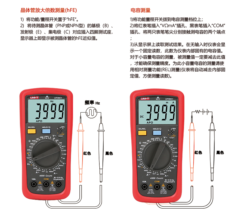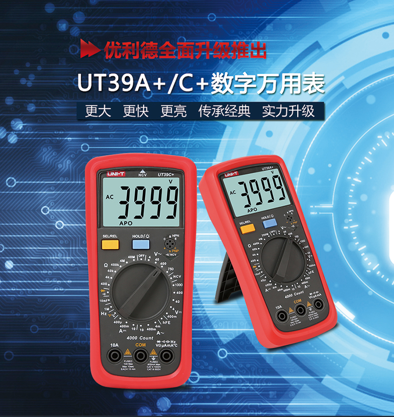 优利德UT39C+万用表数字高精度数显测电容多功能防烧电工万能表 UT39C+