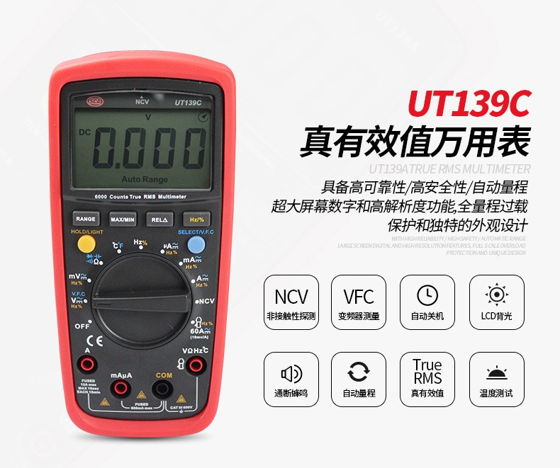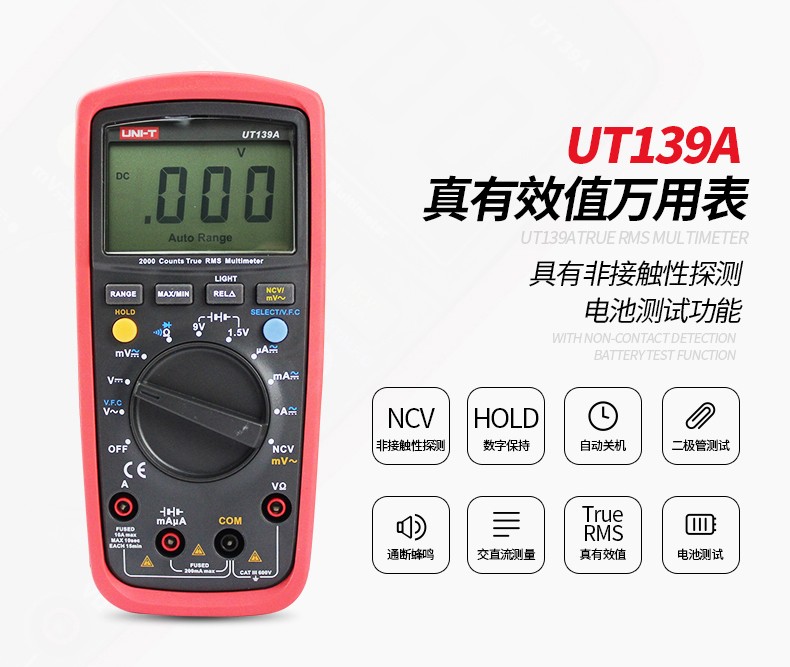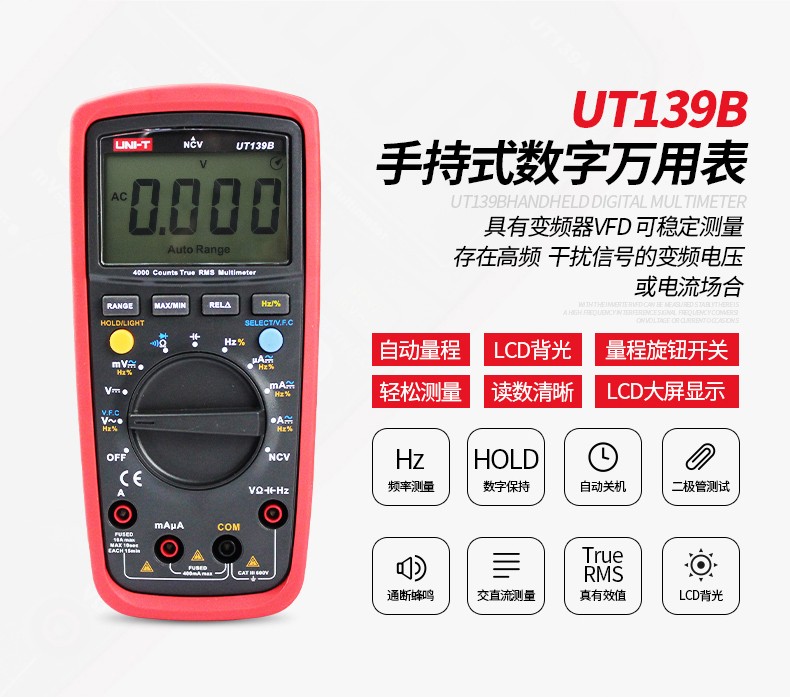 优利德数字万用表防烧型自动量程数显万能表 UT139B