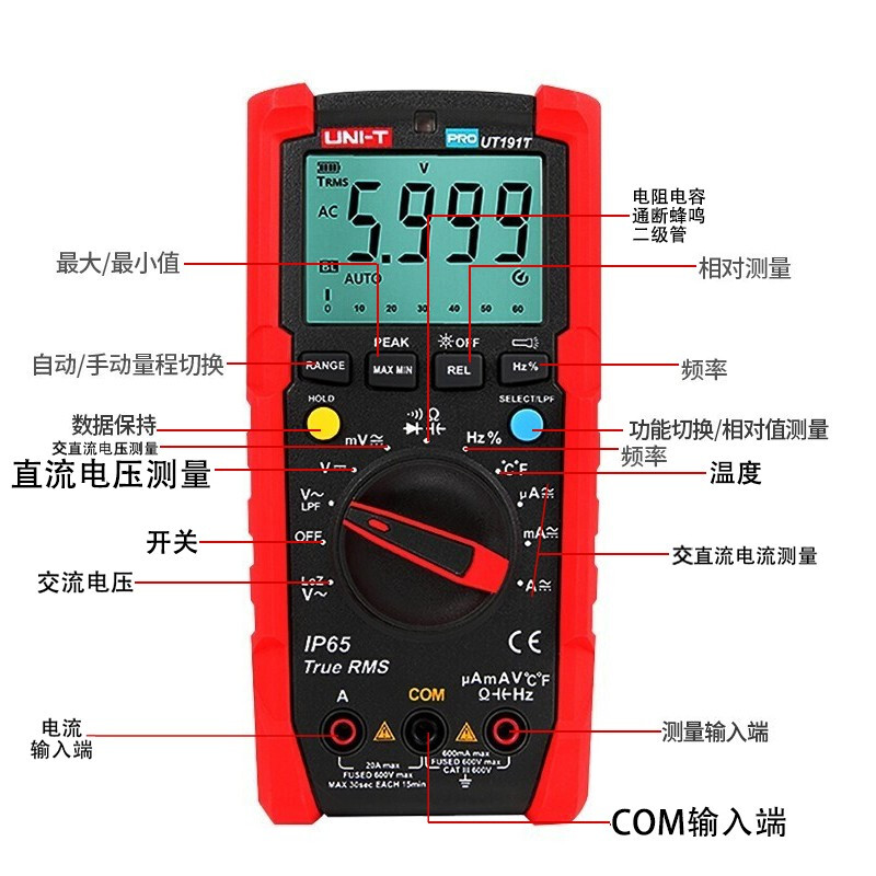 优利德(UNI-T) UT191T 数字万用表 三防数字高精度智能数显万用表