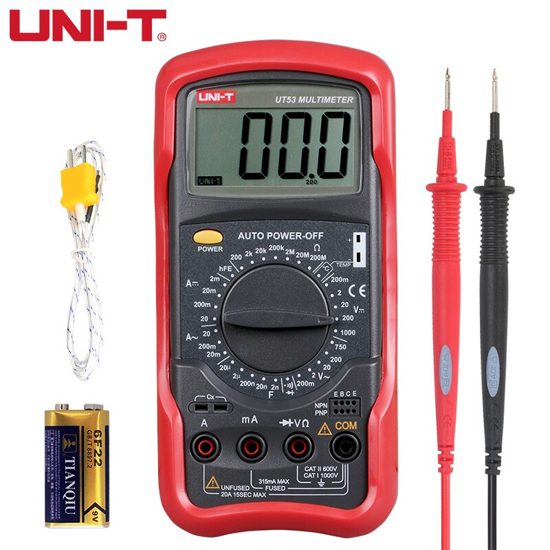优利德(UNI-T)UT53 数字万用表 万能表 高精度 可测温度交直流电压电阻手持式数显电工多用表