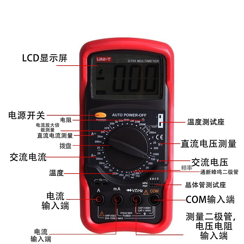 优利德(UNI-T)UT55 数字万用表万能表高精度数显万用表电表 独立温度测试插座