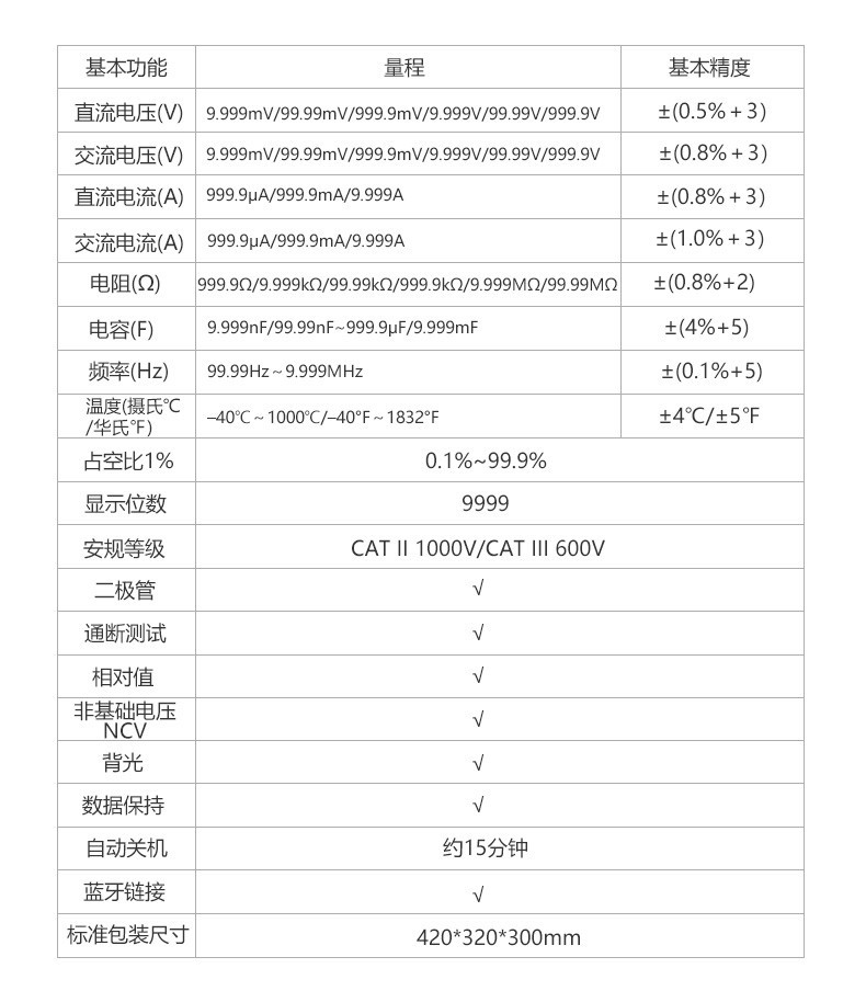 UNI-T优利德 1000A真有效值数字钳形表 UT208B 32cm*15cm*7cm