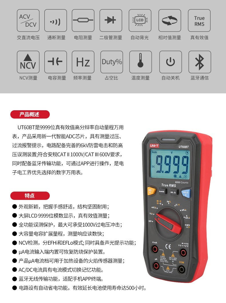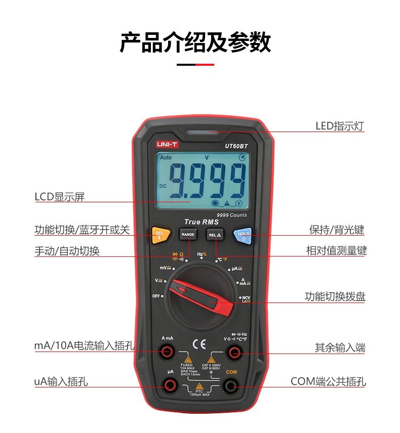 优利德(UNI-T)蓝牙数字万用表UT60BT 智能防烧万能表高精度维修电工数显真有效值 UT60BT