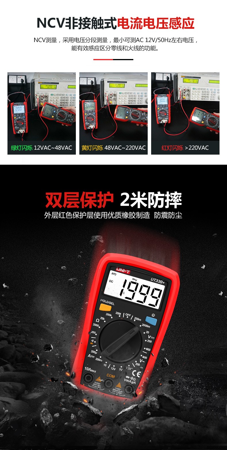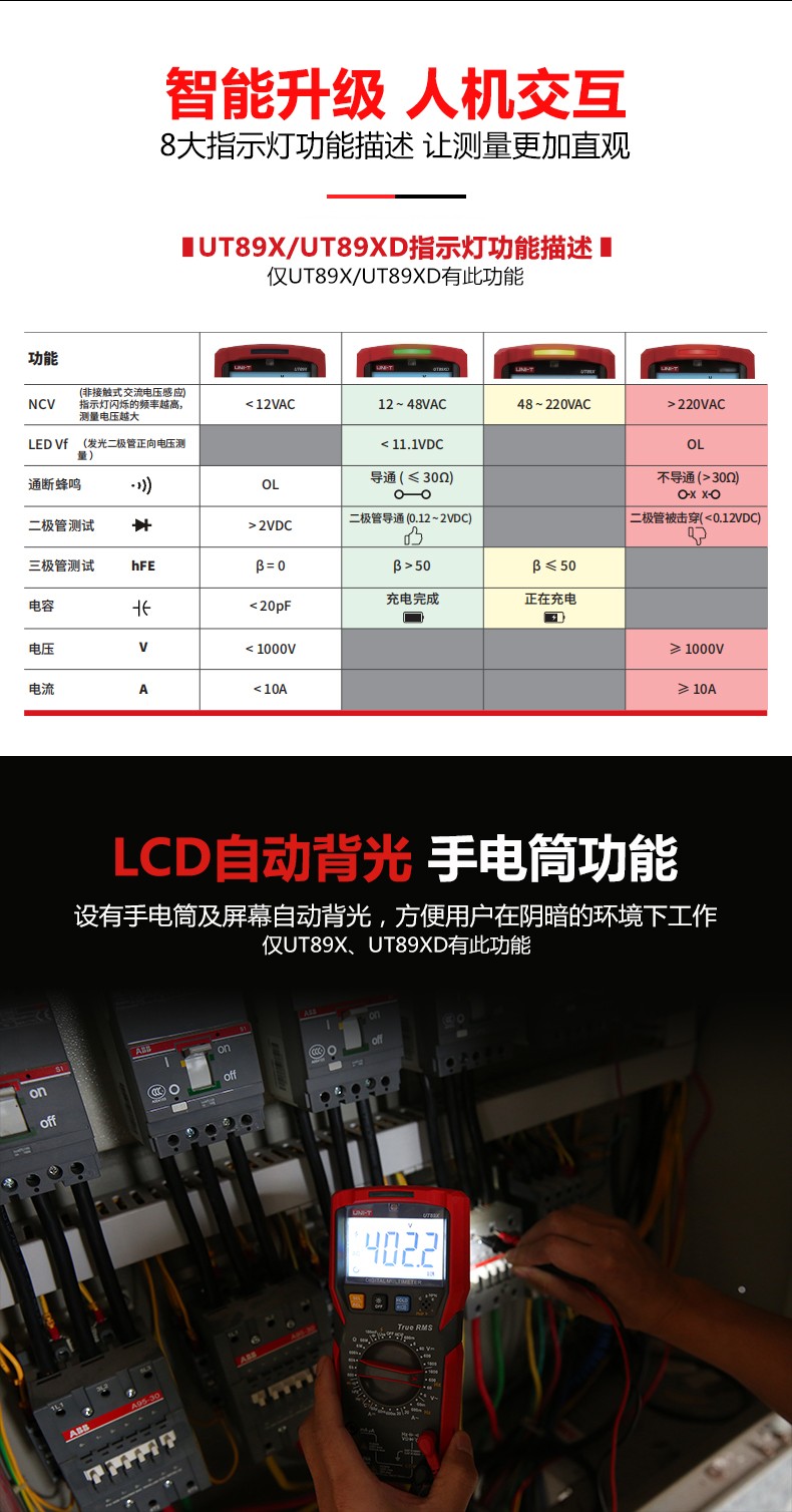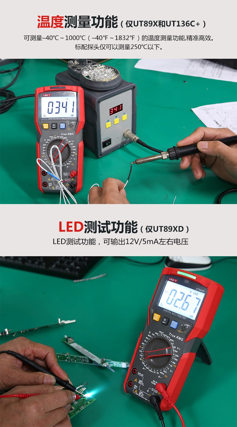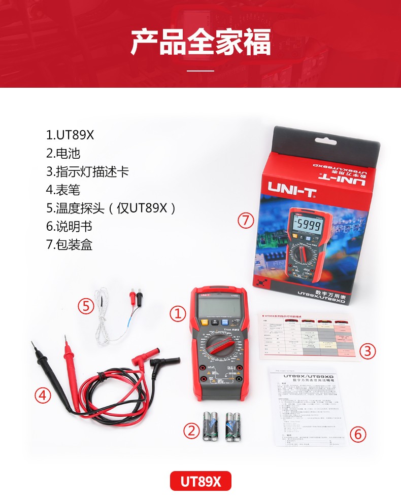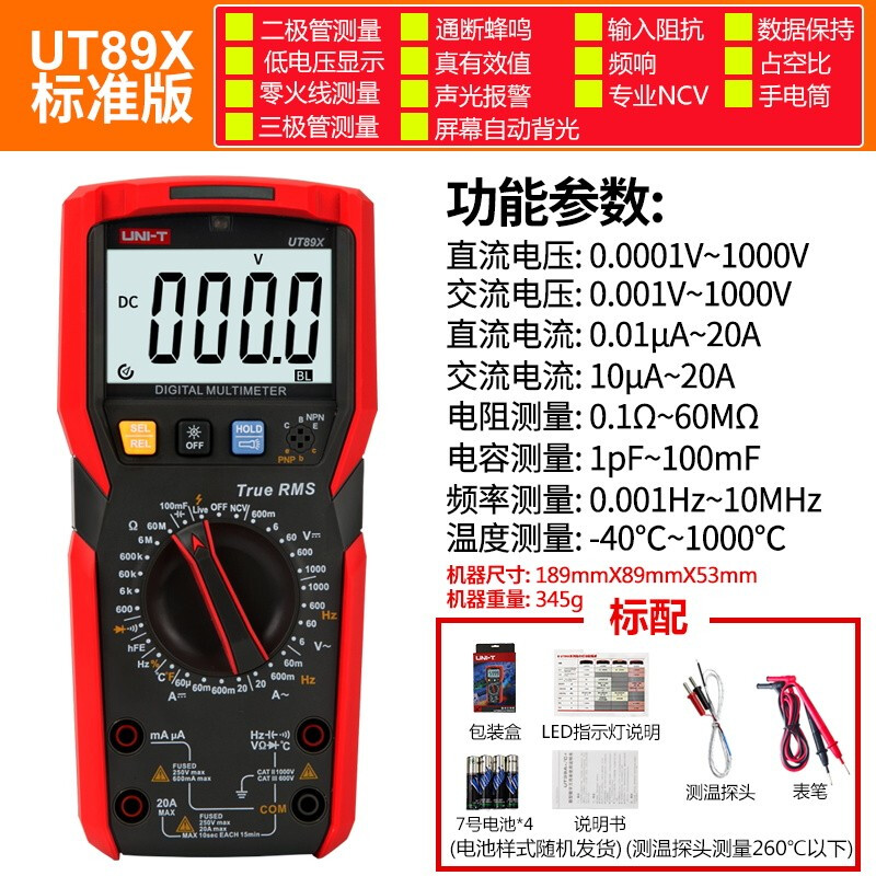 优利德万用表数字高精度全自动数显测电容多功能防烧电工万能表 UT89X(温度/零火线测量)