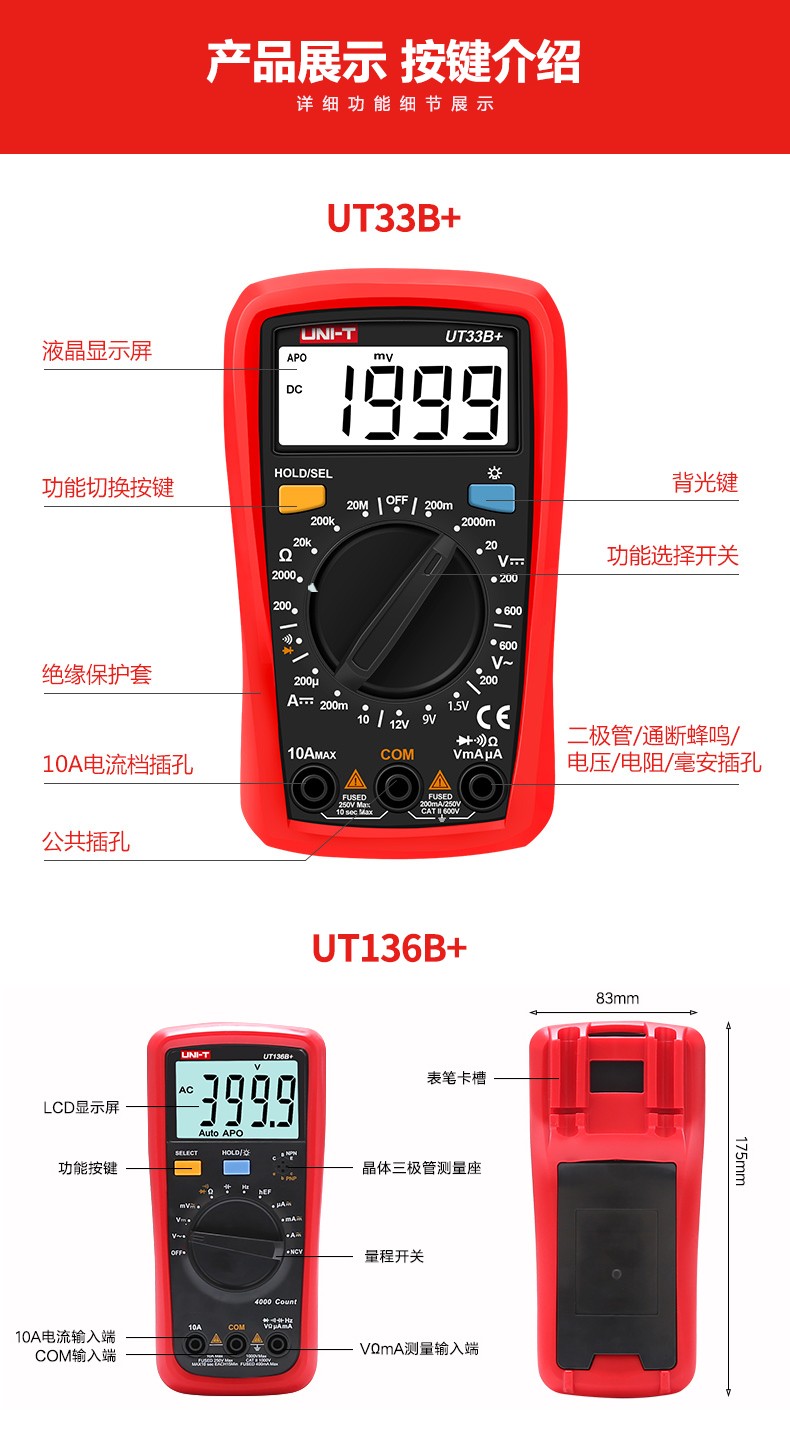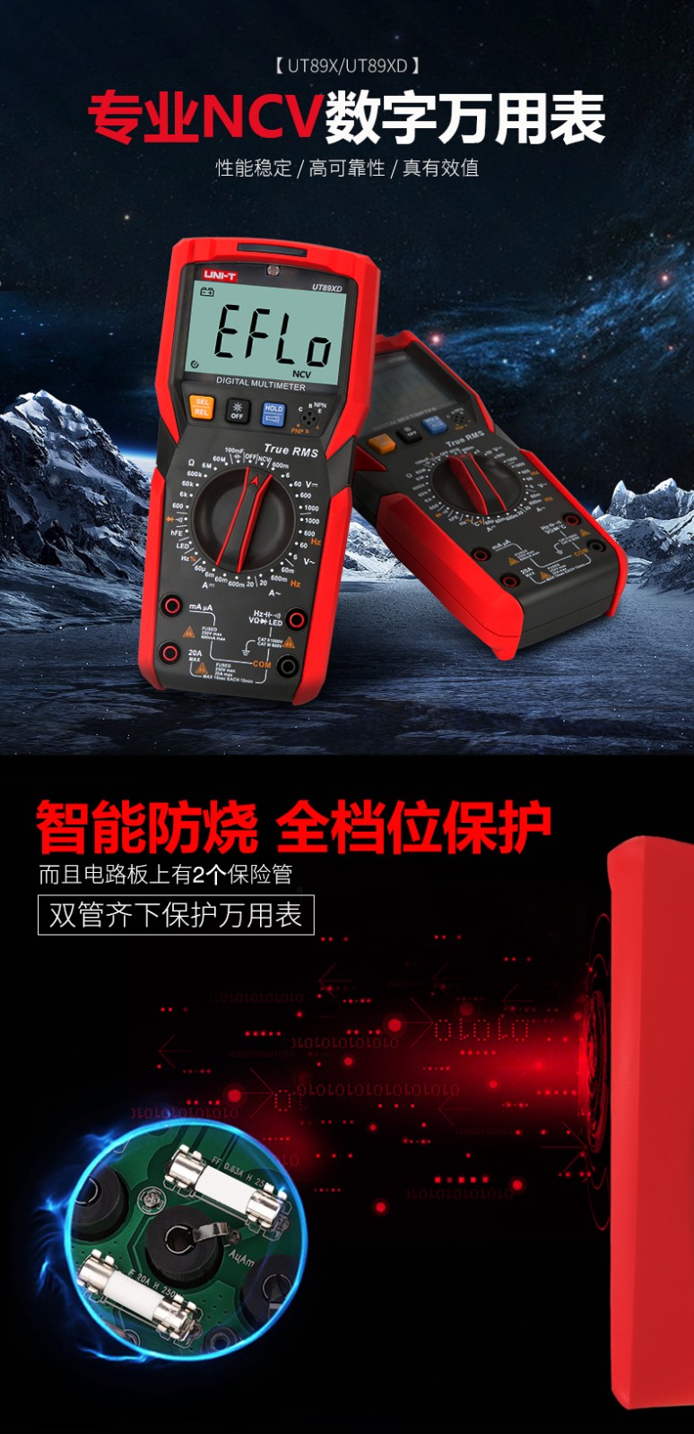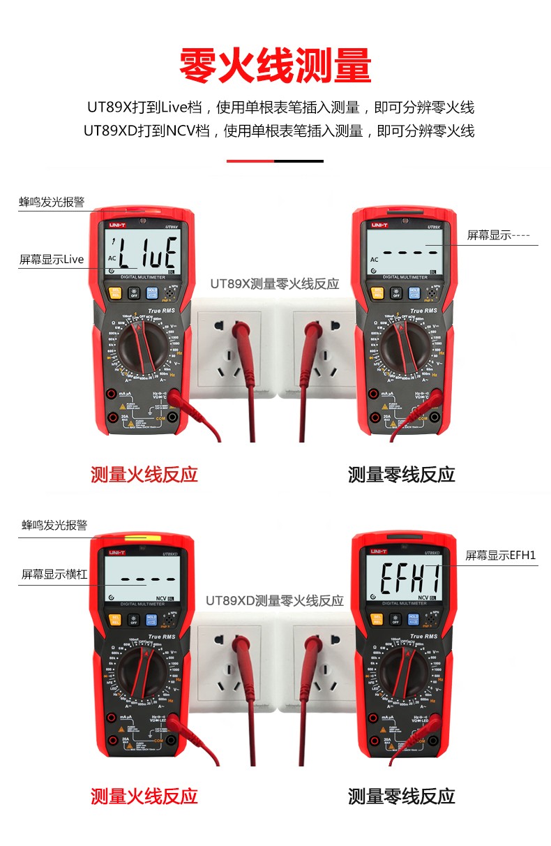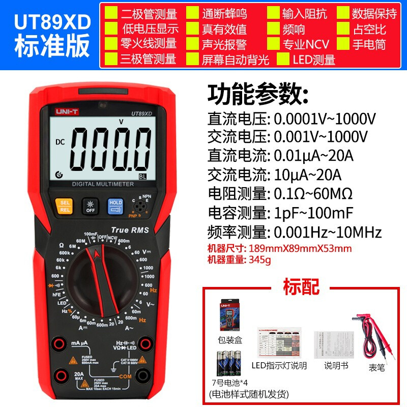 优利德万用表数字高精度全自动数显测电容多功能防烧电工万能表 UT89XD(LED测量)