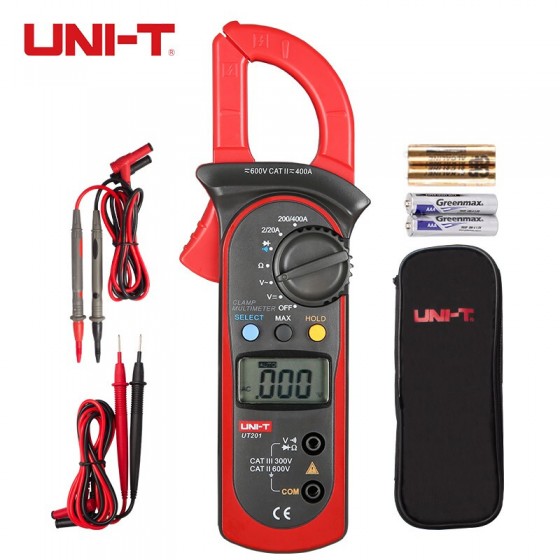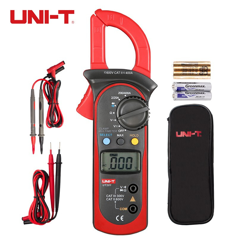 优利德(UNI-T)钳形表数字钳形万用表高精度数显电流表防烧防误测勾表 双表笔电池钳表套餐 UT201 交流0-400A