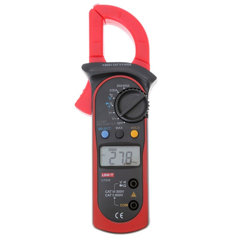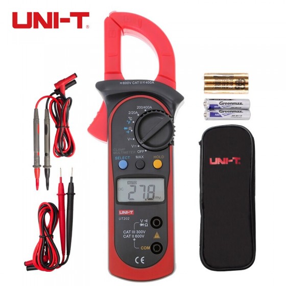 优利德(UNI-T)钳形表数字钳形万用表高精度数显电流表防烧防误测勾表 双表笔电池钳表套餐 UT202 交流0-400A 温度测量