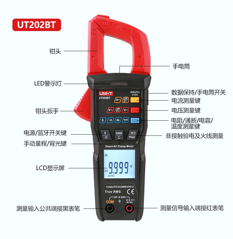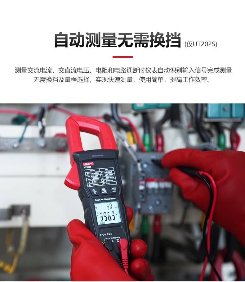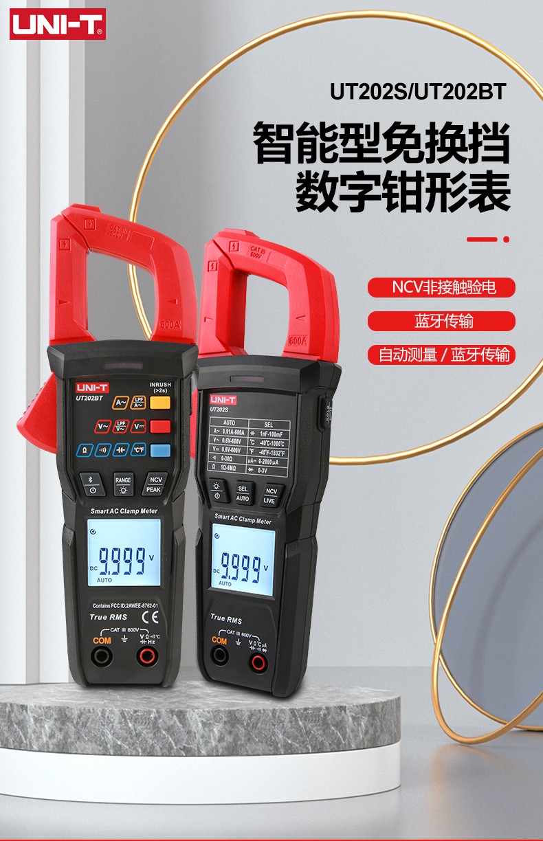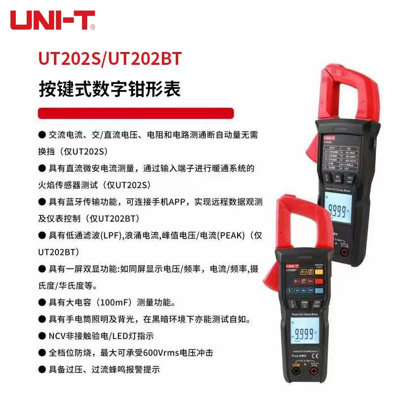 优利德UT202BT高精度数字钳形表免换挡交直流钳流表智能万能表 UT202S(二极管 零火线测试)