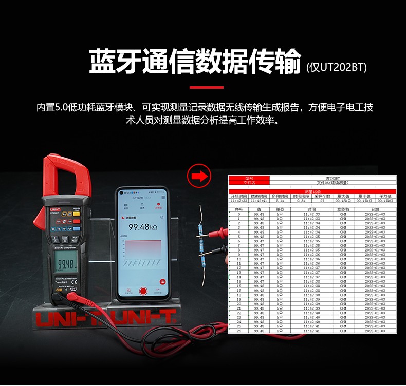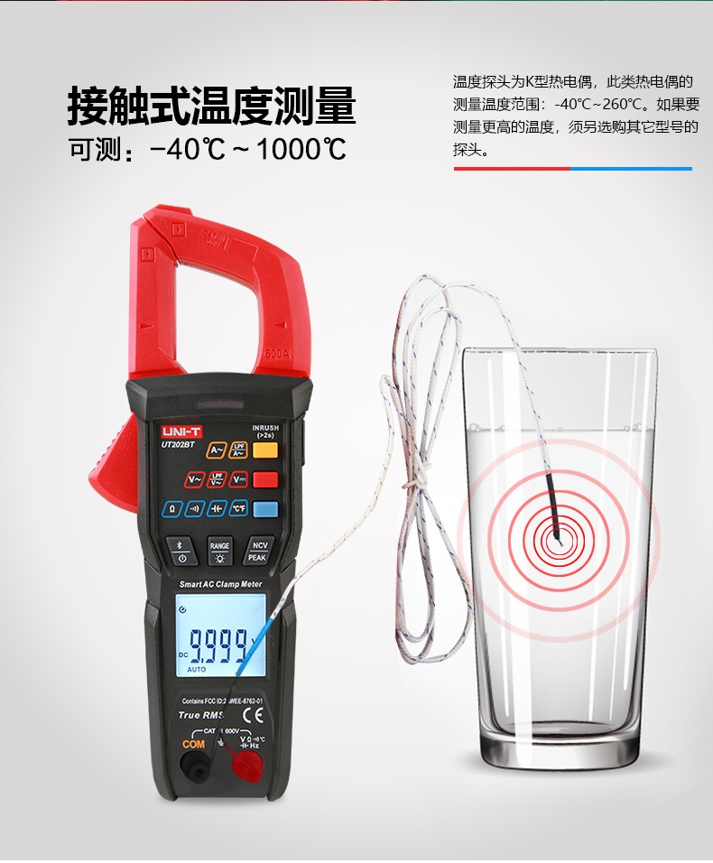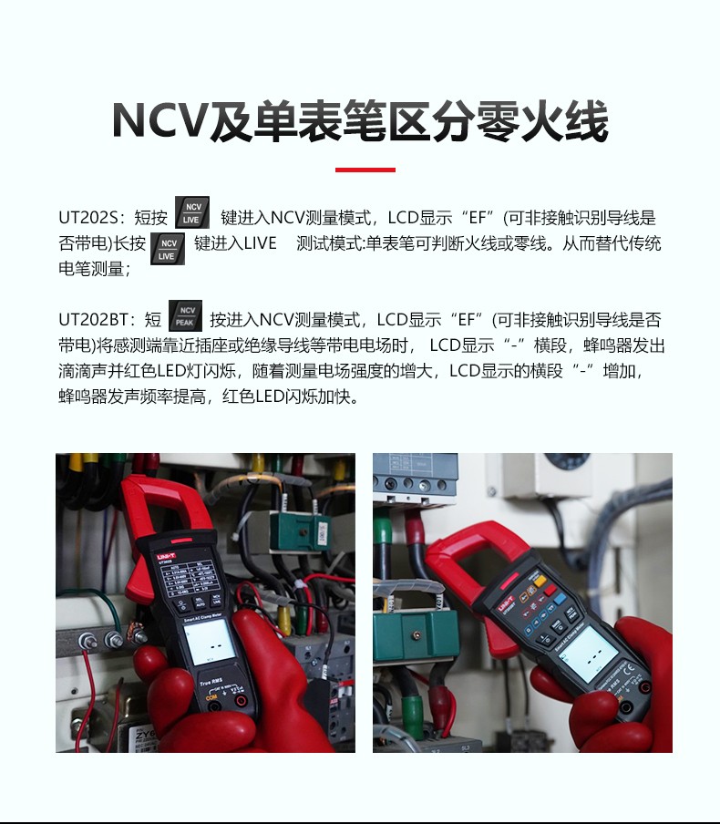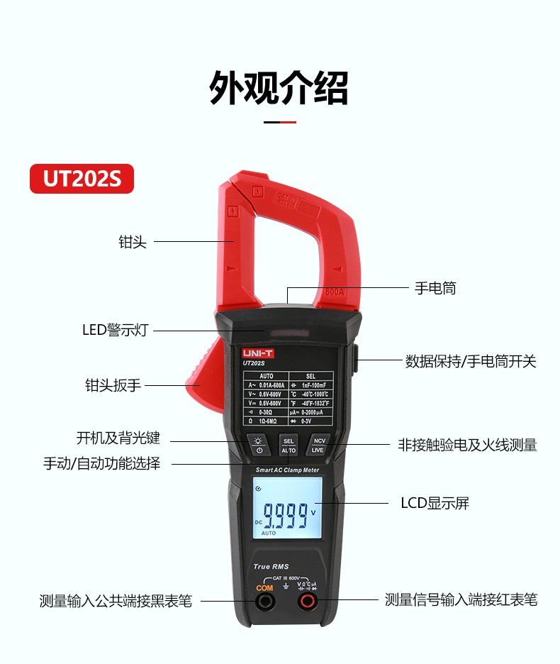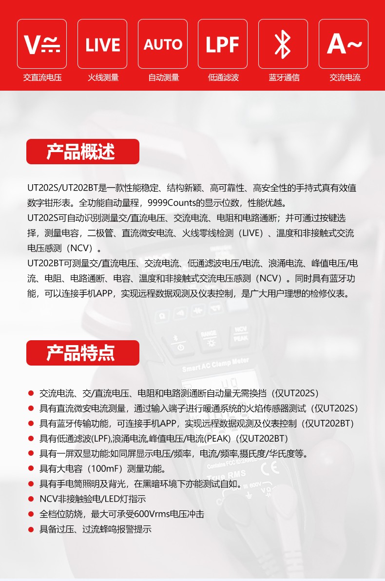 优利德UT202BT高精度数字钳形表免换挡交直流钳流表智能万能表 UT202S(二极管 零火线测试)