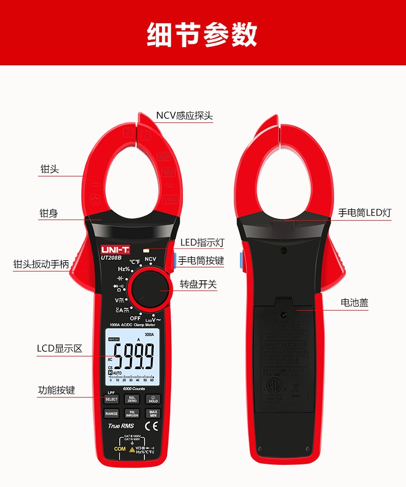 UNI-T优利德 1000A真有效值数字钳形表 UT208B 32cm*15cm*7cm