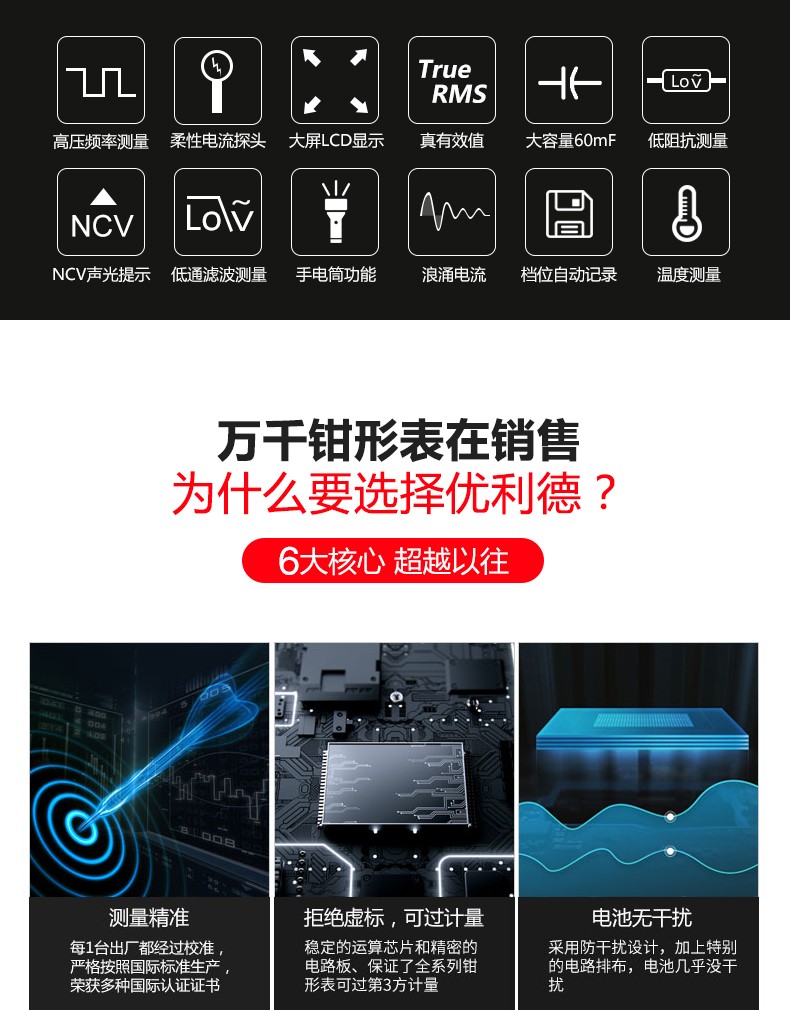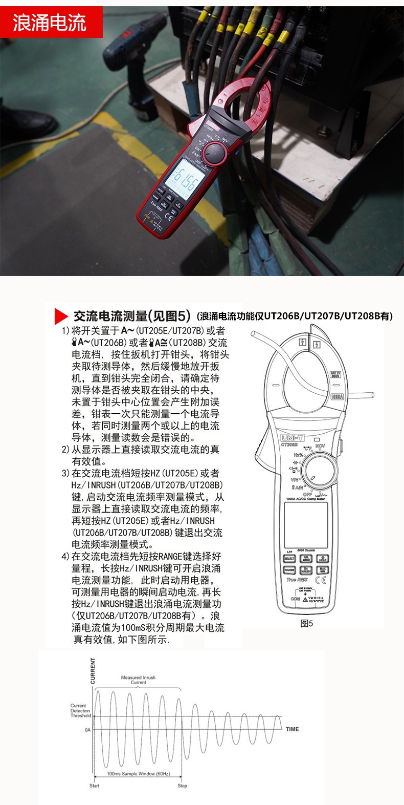 优利德真有效值数字钳形表数显万用表电流表电容电阻交直流万能表1000A大电流 UT207B【1000A交直流电流】