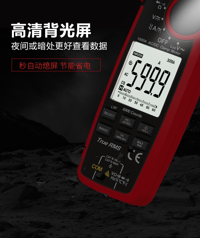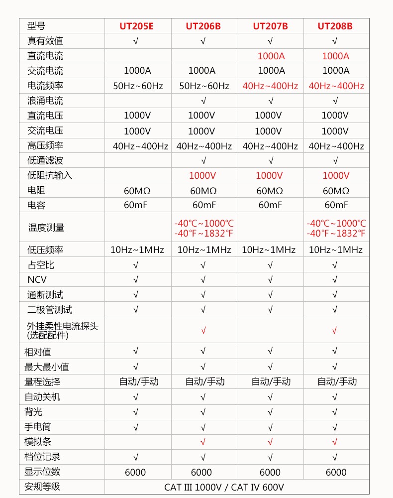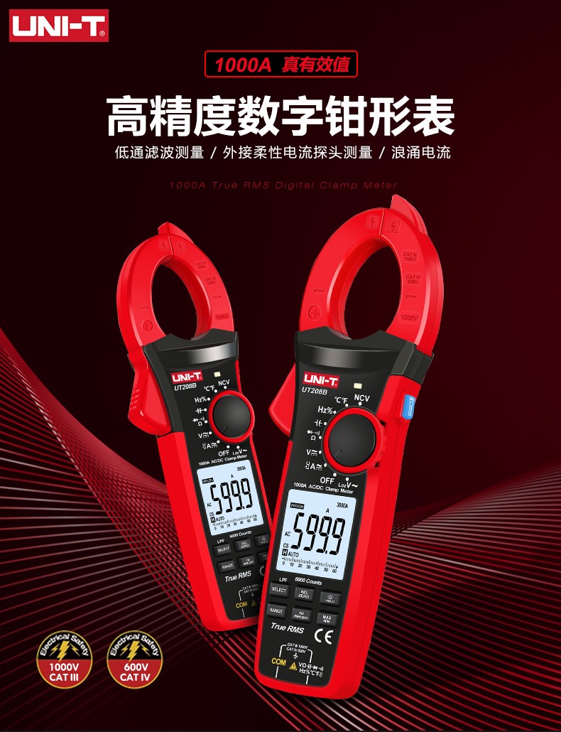 优利德真有效值数字钳形表数显万用表电流表电容电阻交直流万能表1000A大电流 UT208B【1000A交直流电流+温度测量】