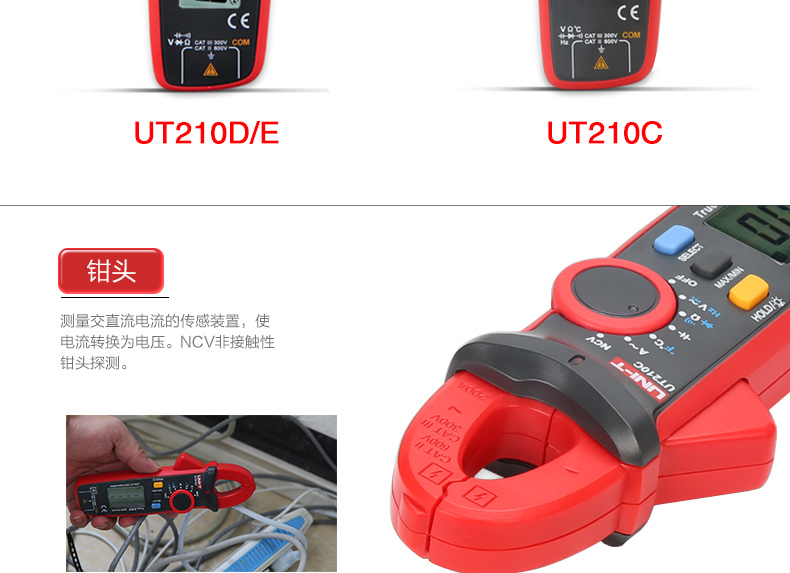 优利德UT210E钳形表迷你型 UT210A数字钳形万用表 UT210D交直流电流表钳型表 UT210B交流电流