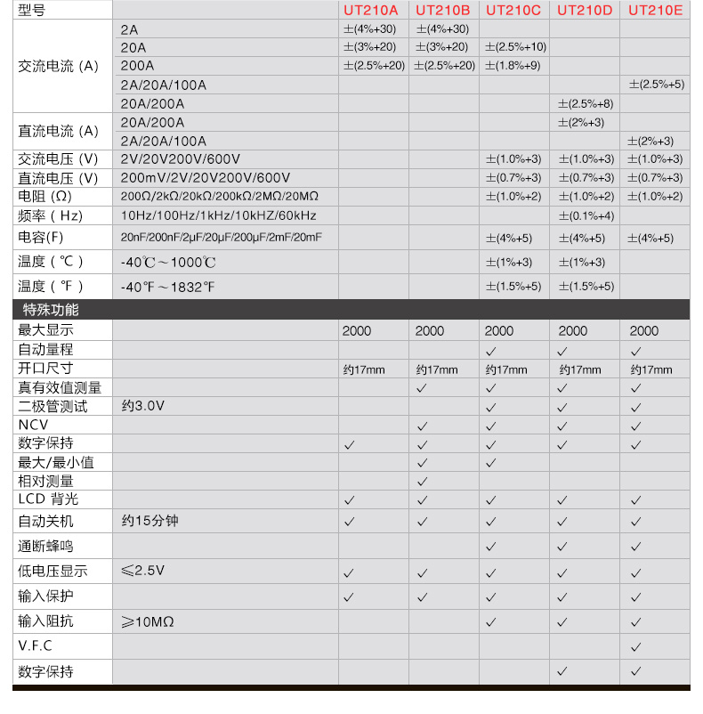 优利德UT210E钳形表迷你型 UT210A数字钳形万用表 UT210D交直流电流表钳型表 UT210E交直流电流