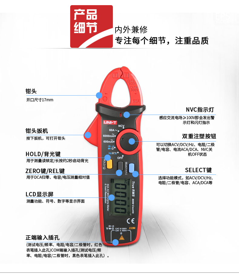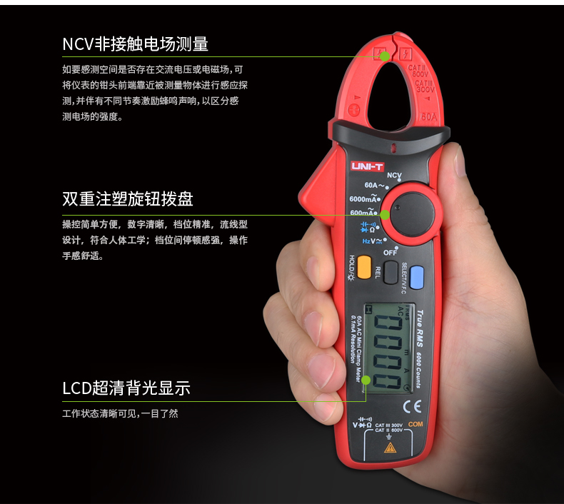 UNI-T优利德 1000A真有效值数字钳形表 UT208B 32cm*15cm*7cm