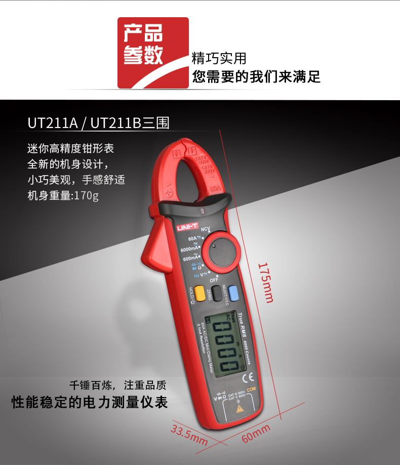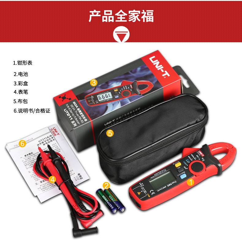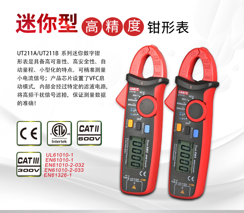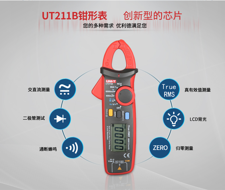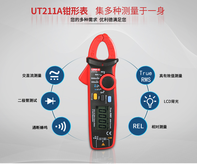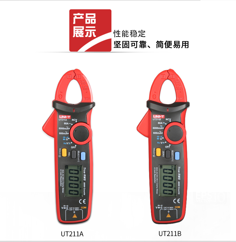 【官方直销】优利德UT211A/UT211B 60A高精度钳形表真有效值钳形万用表迷你 【UT211B】