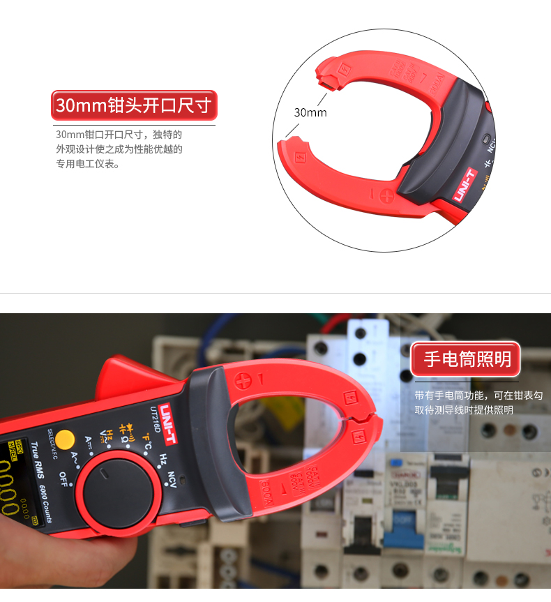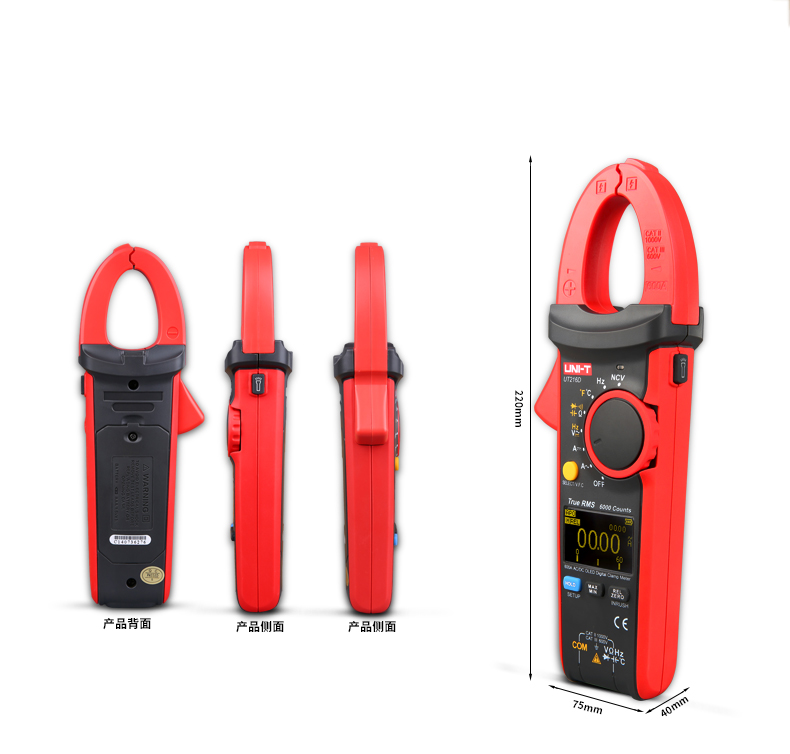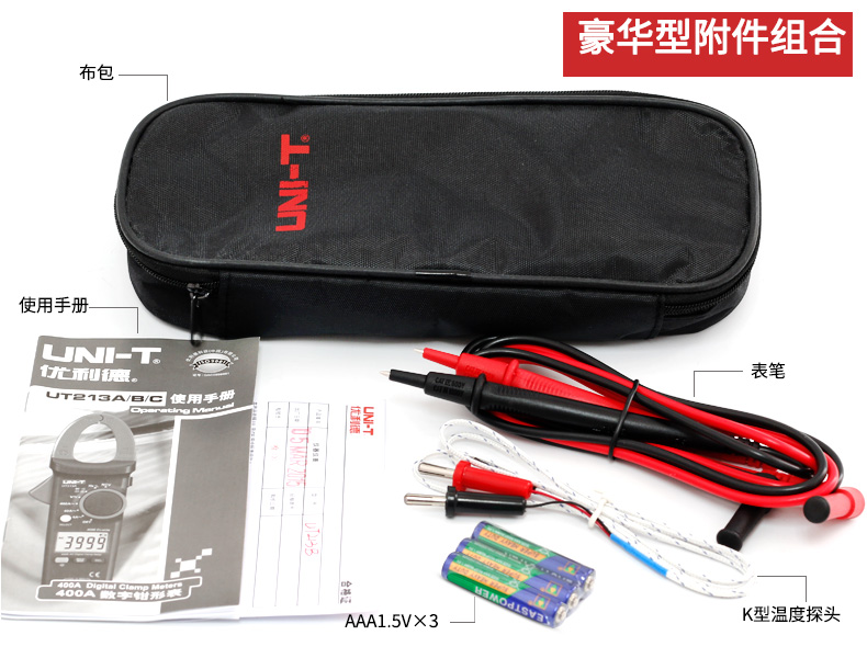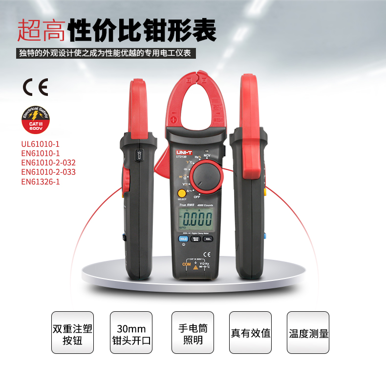 优利德(UNI-T)UT213C 钳形表真有效值数字钳形万用表数显400A交直流电流表30mm开口 UT213B 单交流 真有效值 温度测量