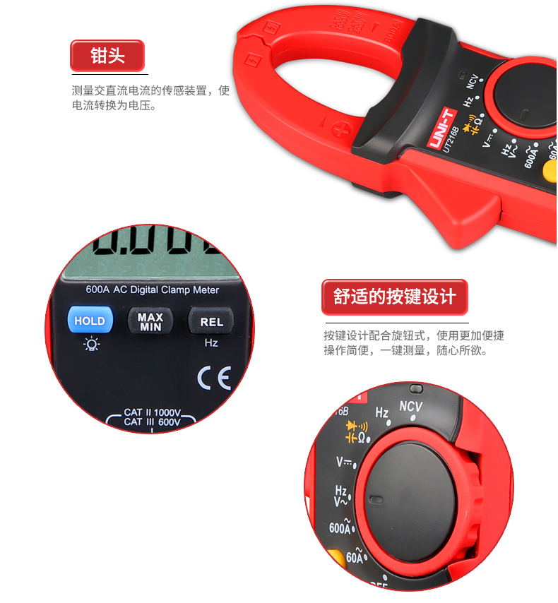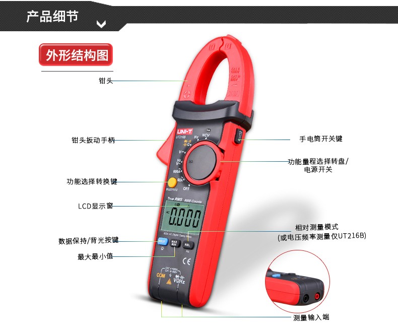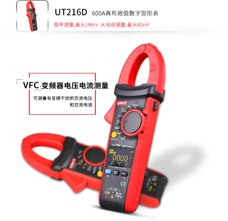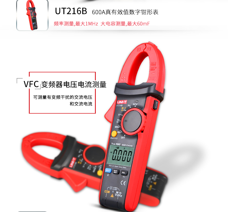 【官方直销】优利德UT216系列数字钳形万用表高精度数显电流钳表 【UT216B】交流600A+真有效值