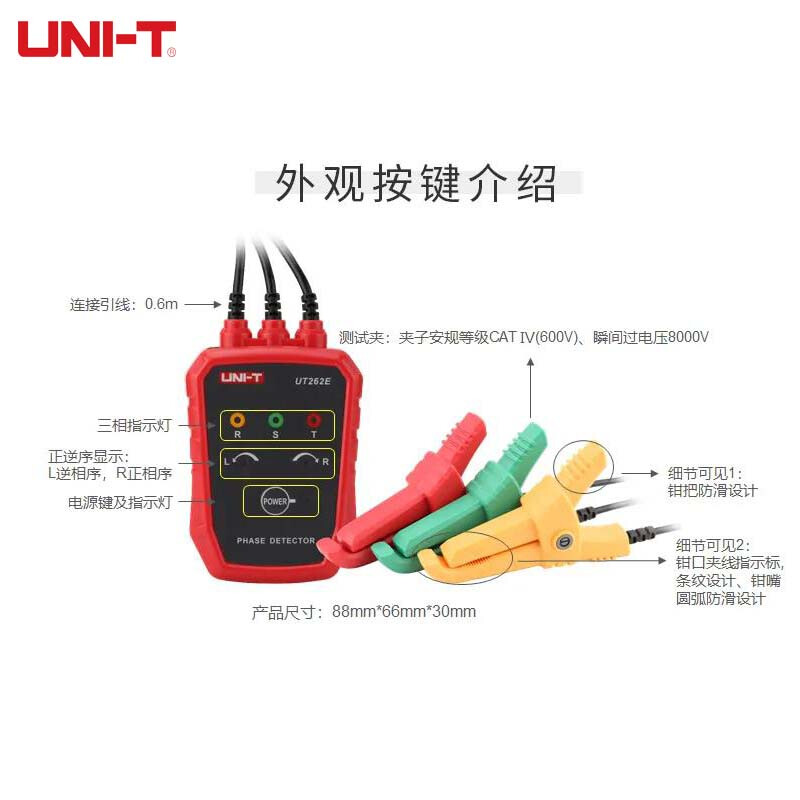 优利德(UNI-T)UT262E 相序仪非接触式检相仪感应式三相相序表相位检测仪线路检修断点定位