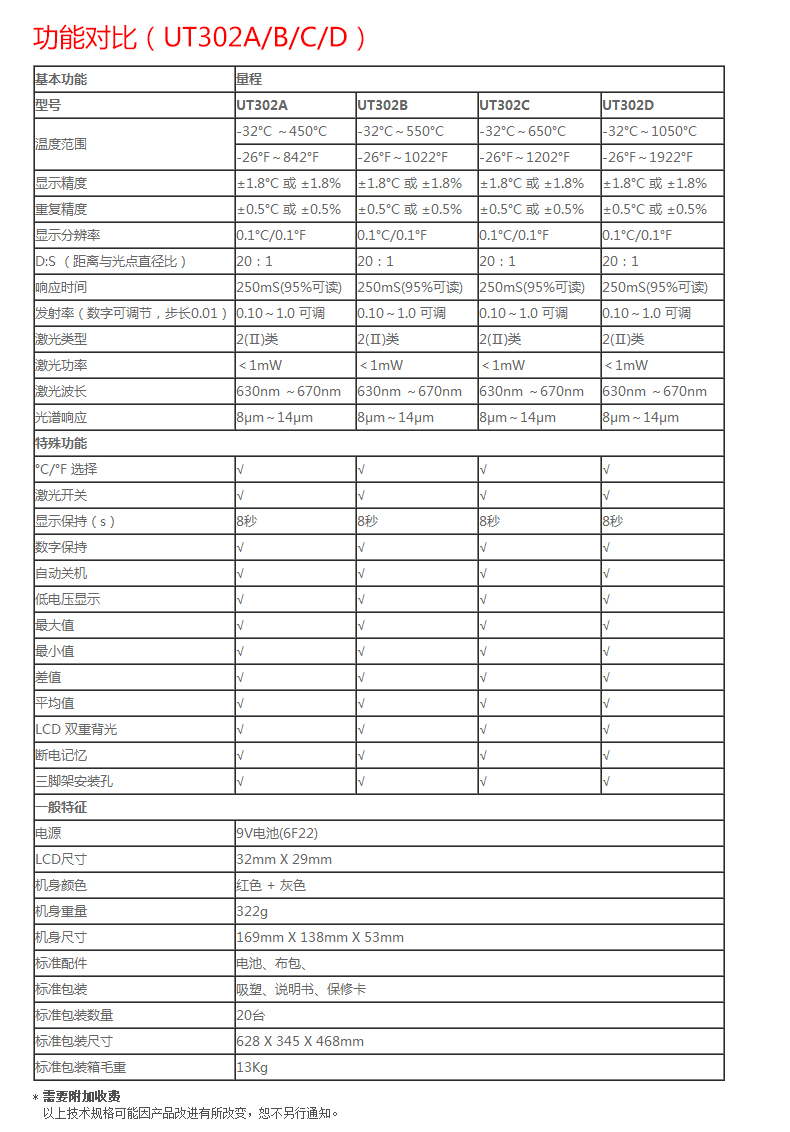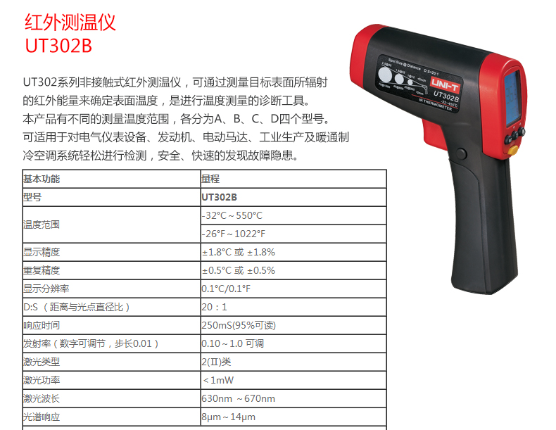 【官方直销】优利德UT302A/UT302B/UT302C/302D 专业高温型红外测温仪工业级 UT302A