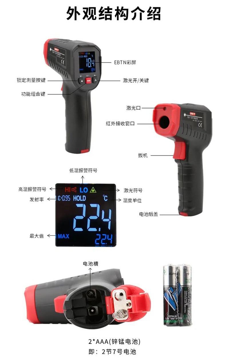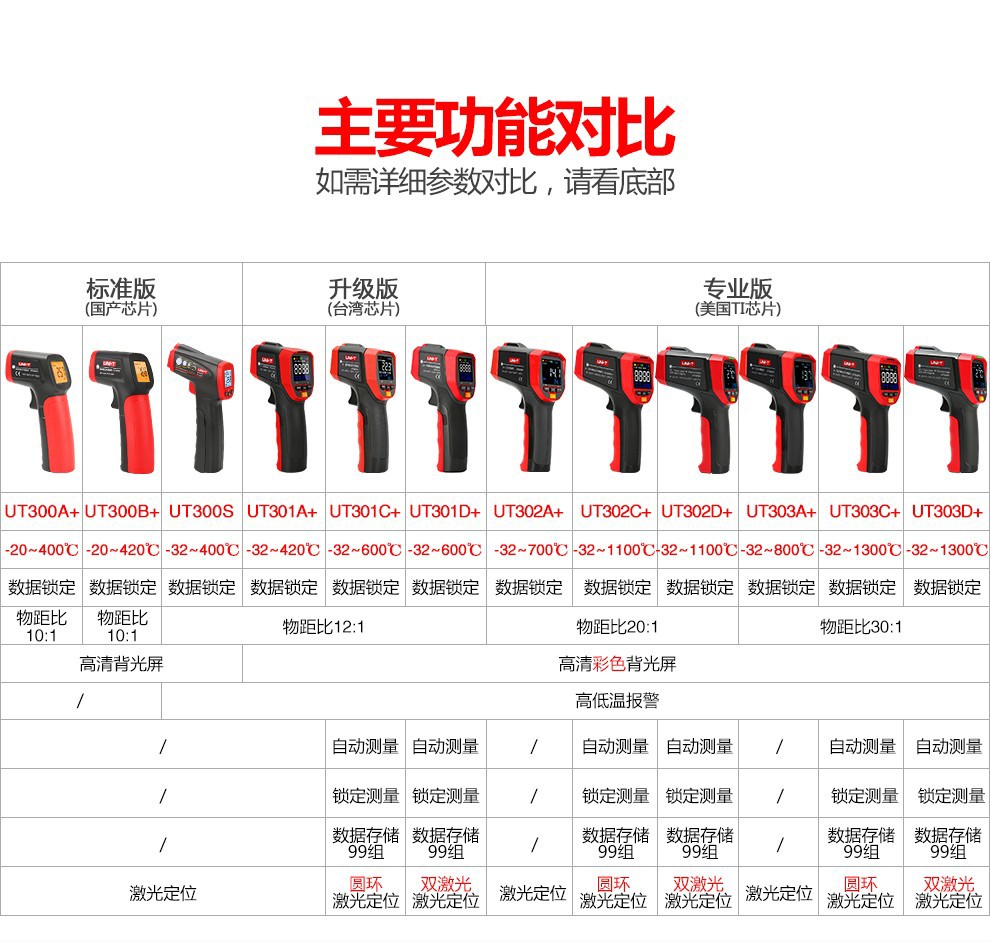 【官方直销】优利德红外线测温仪手持式工业红外测温枪高精度高温电子温度计非接触式测温仪 UT303C+专业版【-32℃~1300℃】