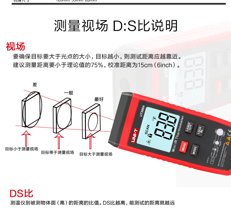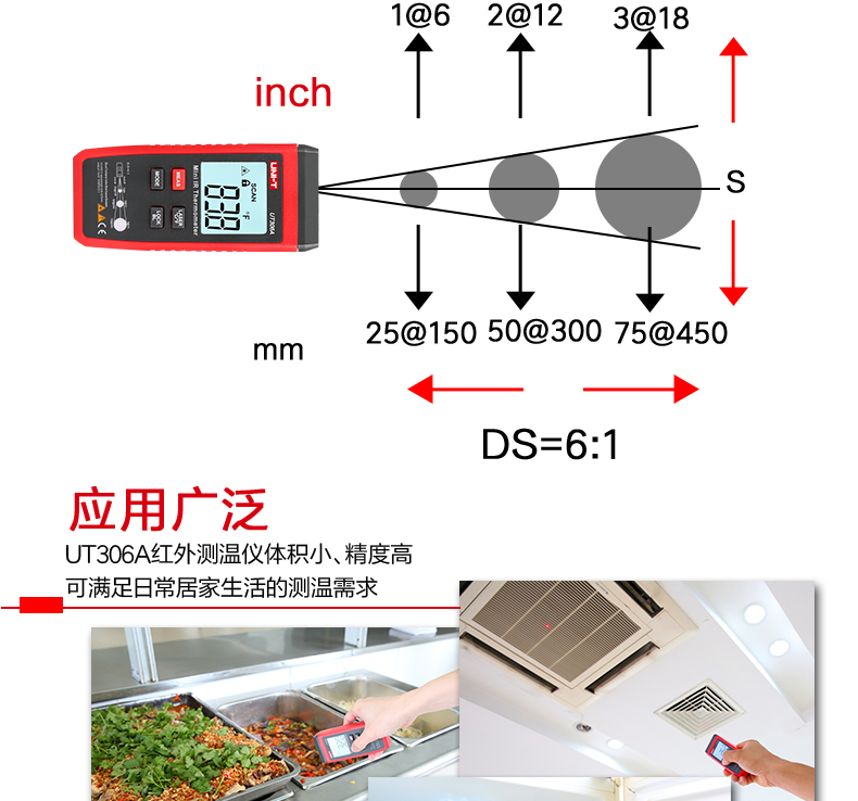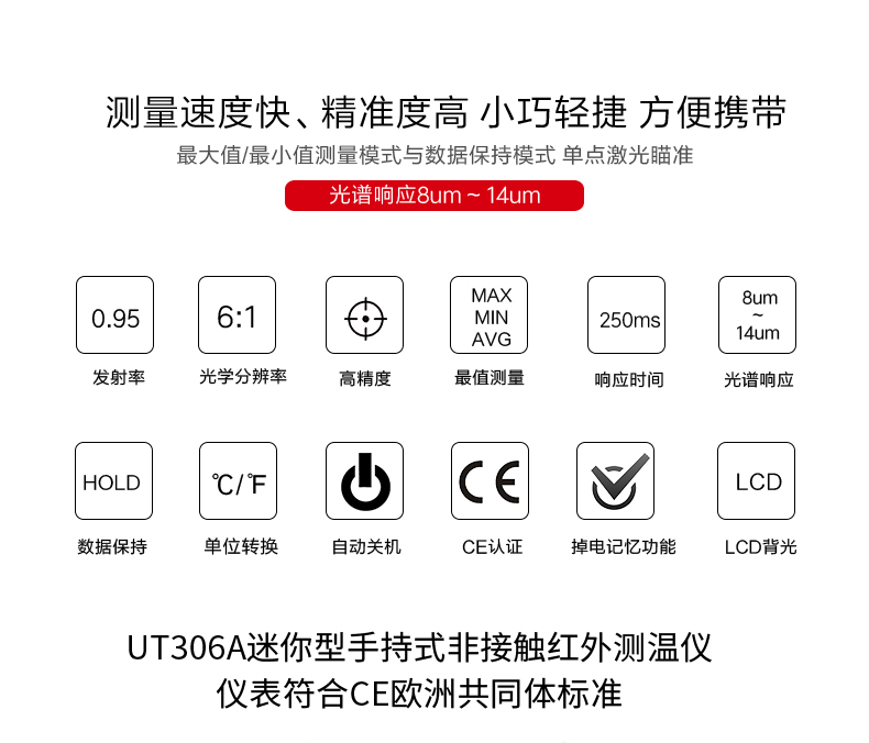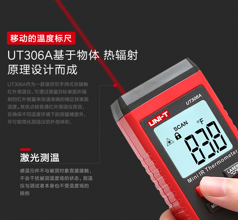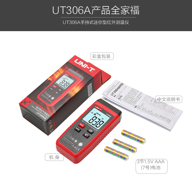 优利德UT306A红外线测温仪高精度测温枪 食品油温厨房电子温度计 UT306A