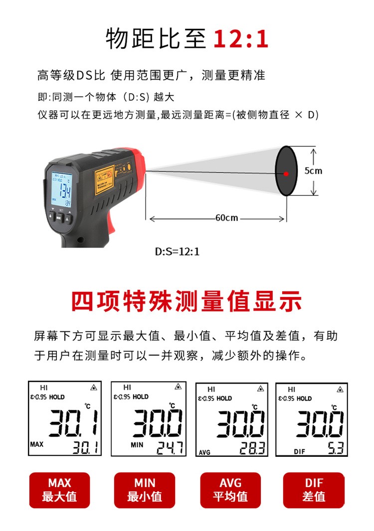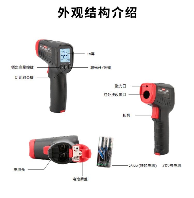 优利德(UNI-T)测温枪工业红外线测温仪手持测油温电子温度计家用厨房水温检测仪-50℃~500℃ UT306S 单激光