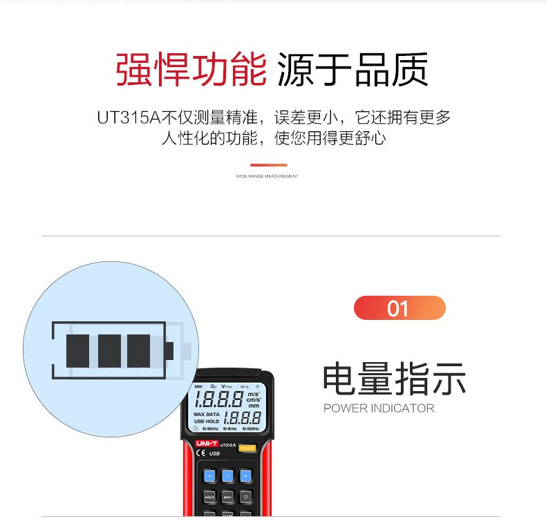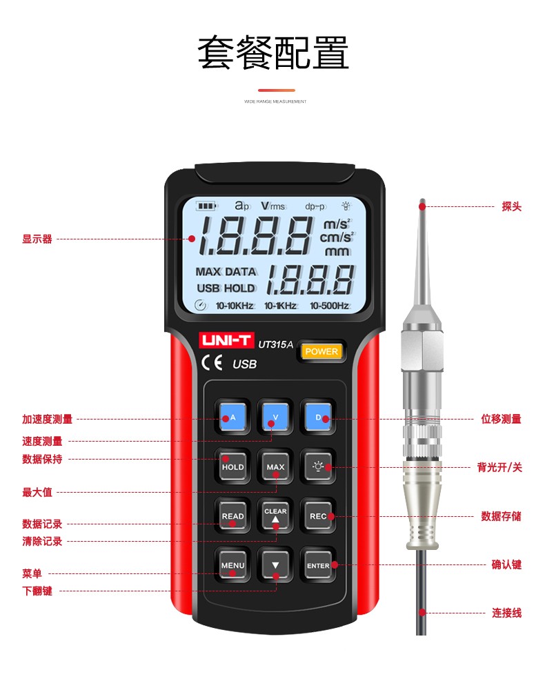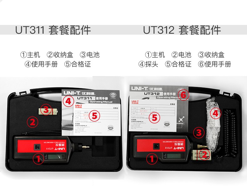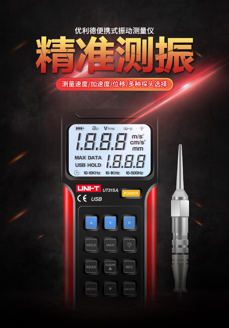 【官方直销】优利德测震仪UT311/312/315/数字测振仪便携式振动测量仪 频率计 UT311(一体式)
