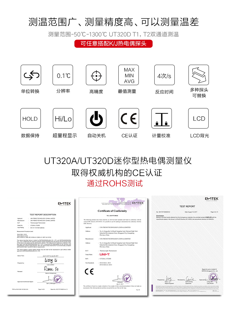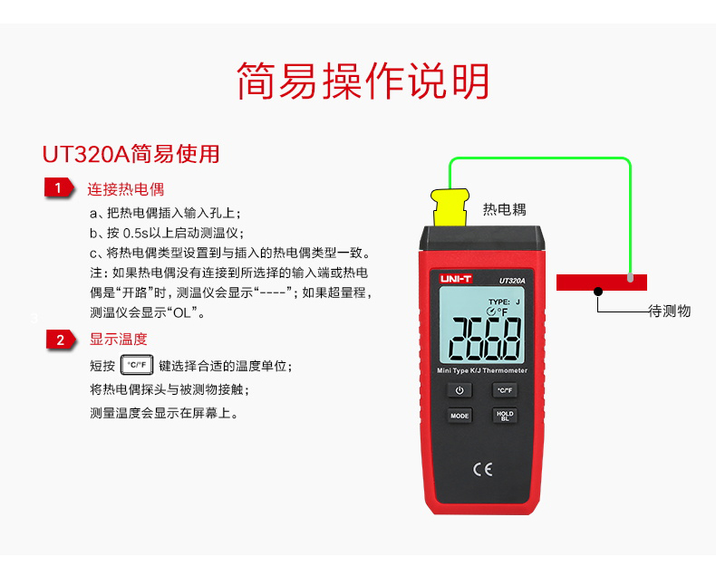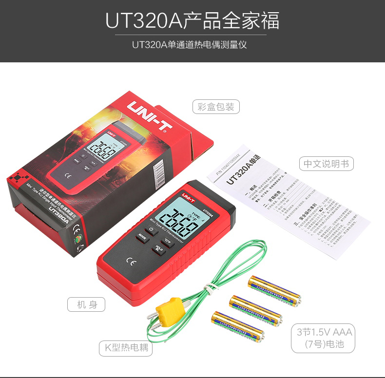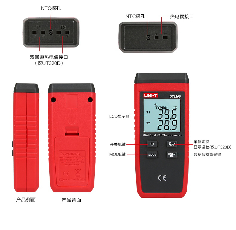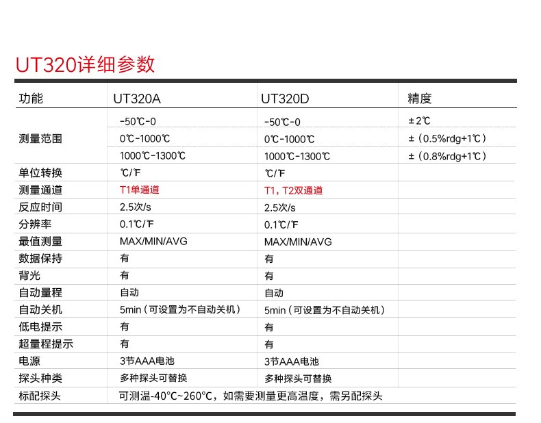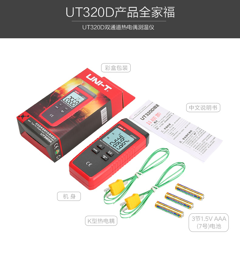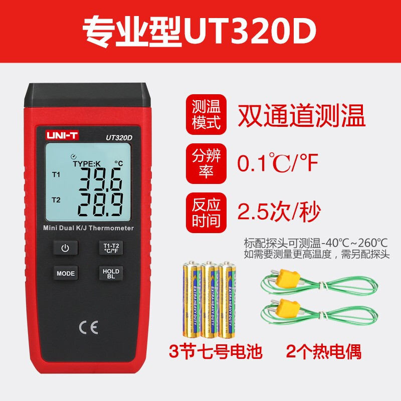 【官方直销】优利德UT320D接触式测温仪热电偶测温仪器表面温度计带探头温度表 UT320D(双路测温)