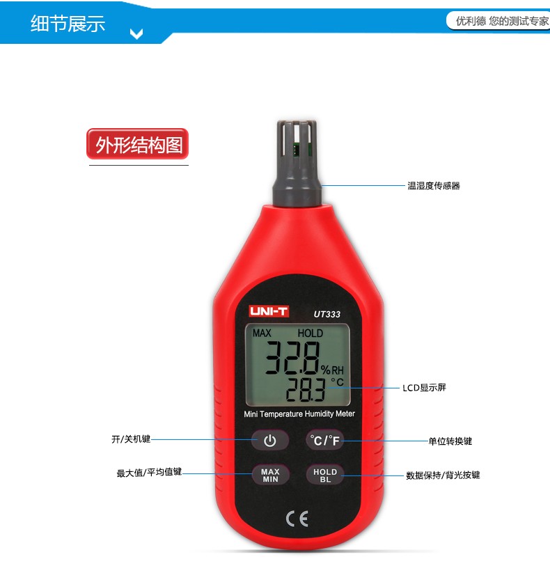 优利德迷你型数字温湿度计 实验室婴儿房家用室内电子温度计工业温湿度表 UT333(湿度计)