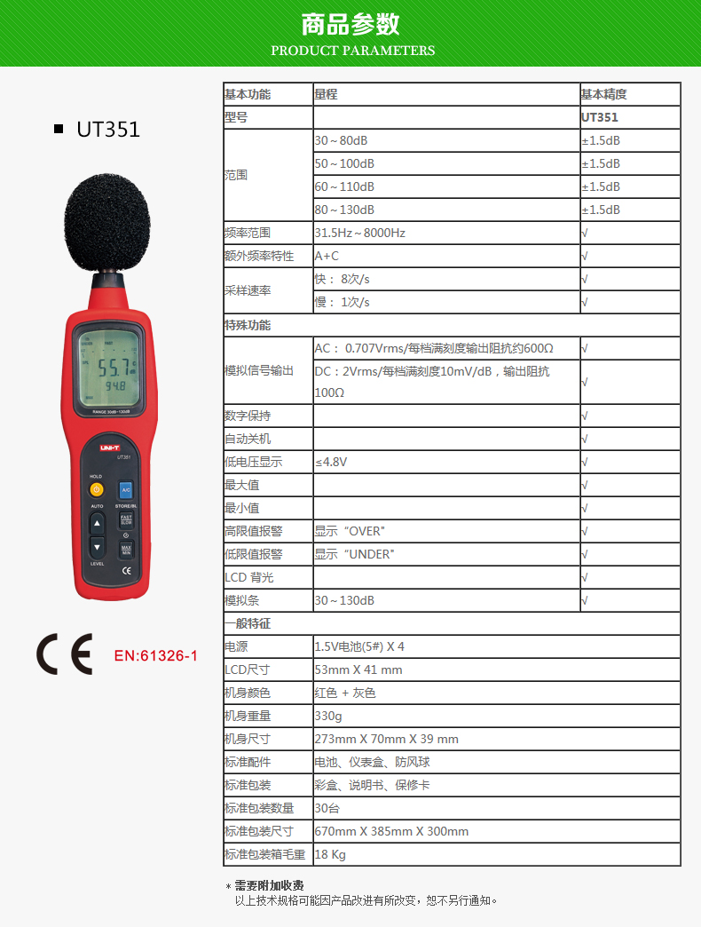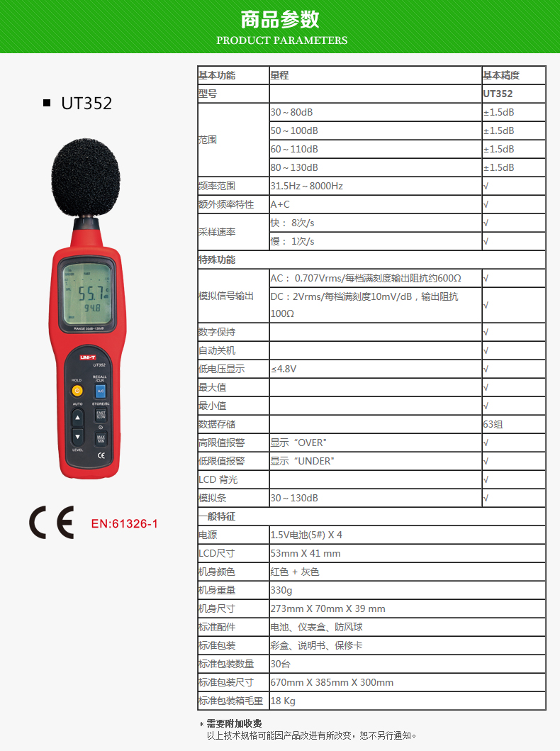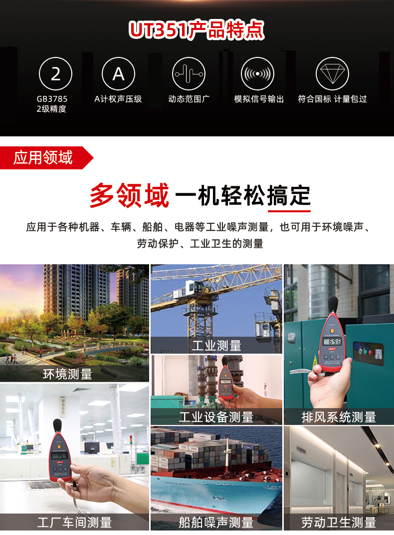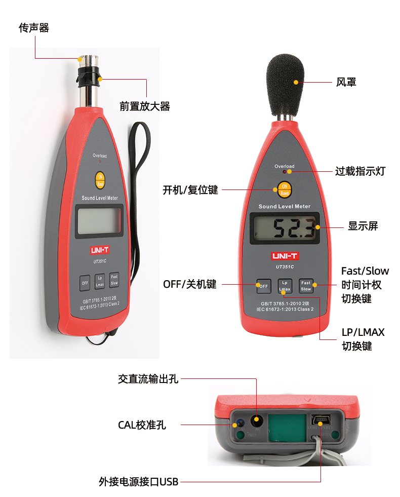 优利德UT351C 高精度声级计 噪音计 UT352噪音仪 噪声音量测试声音测试器 A/C加权 UT352(高精度 数据传输)