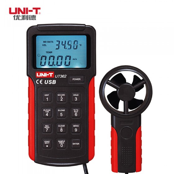 优利德(UNI-T)UT362 风速计 数字式风速仪数显风速测量仪风速表 带温度测量USB数据输出