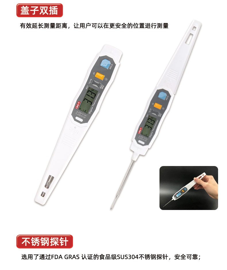 【官方直销】优利德A61高精度数显探针式双色LED提醒水温油温食品电子温度计 A61