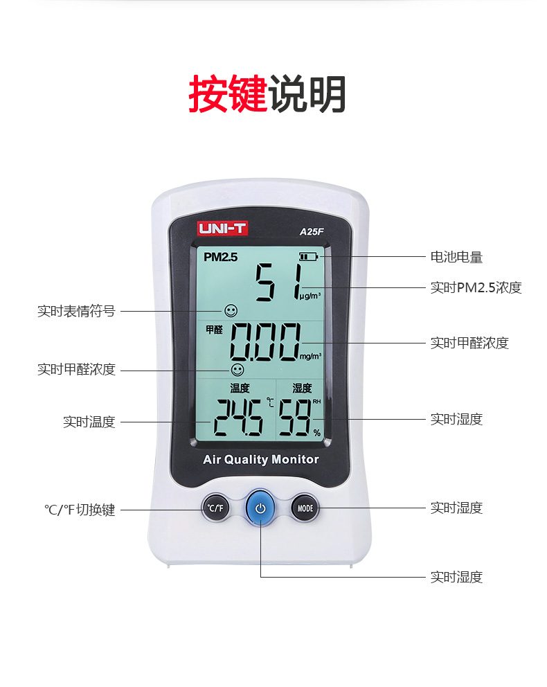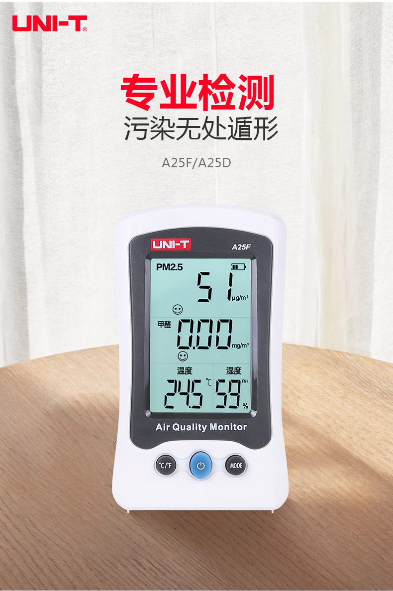 【官方直销】优利德A25D检测仪家用 PM2.5激光空气质量监测试仪雾霾检测 A25D(雾霾测量)