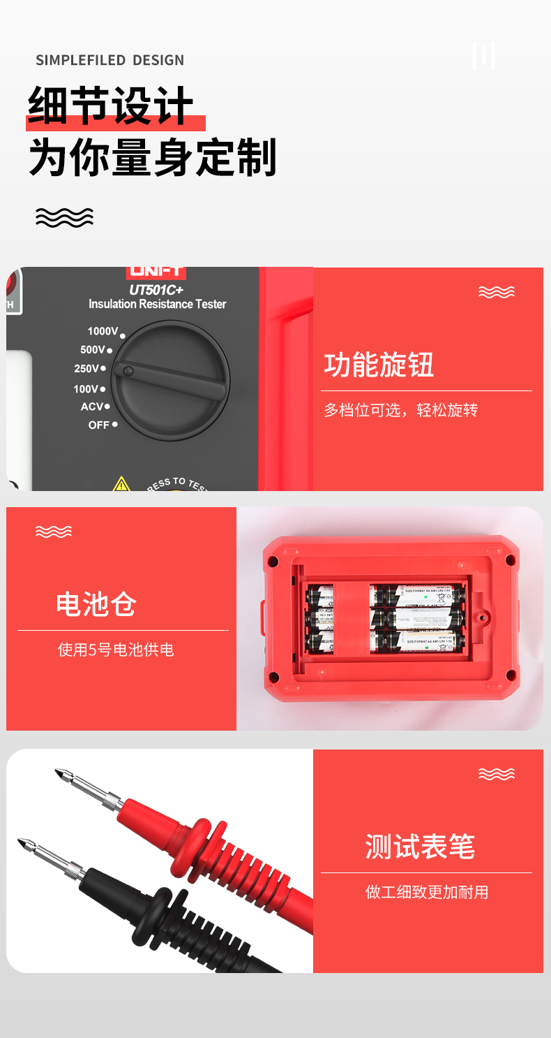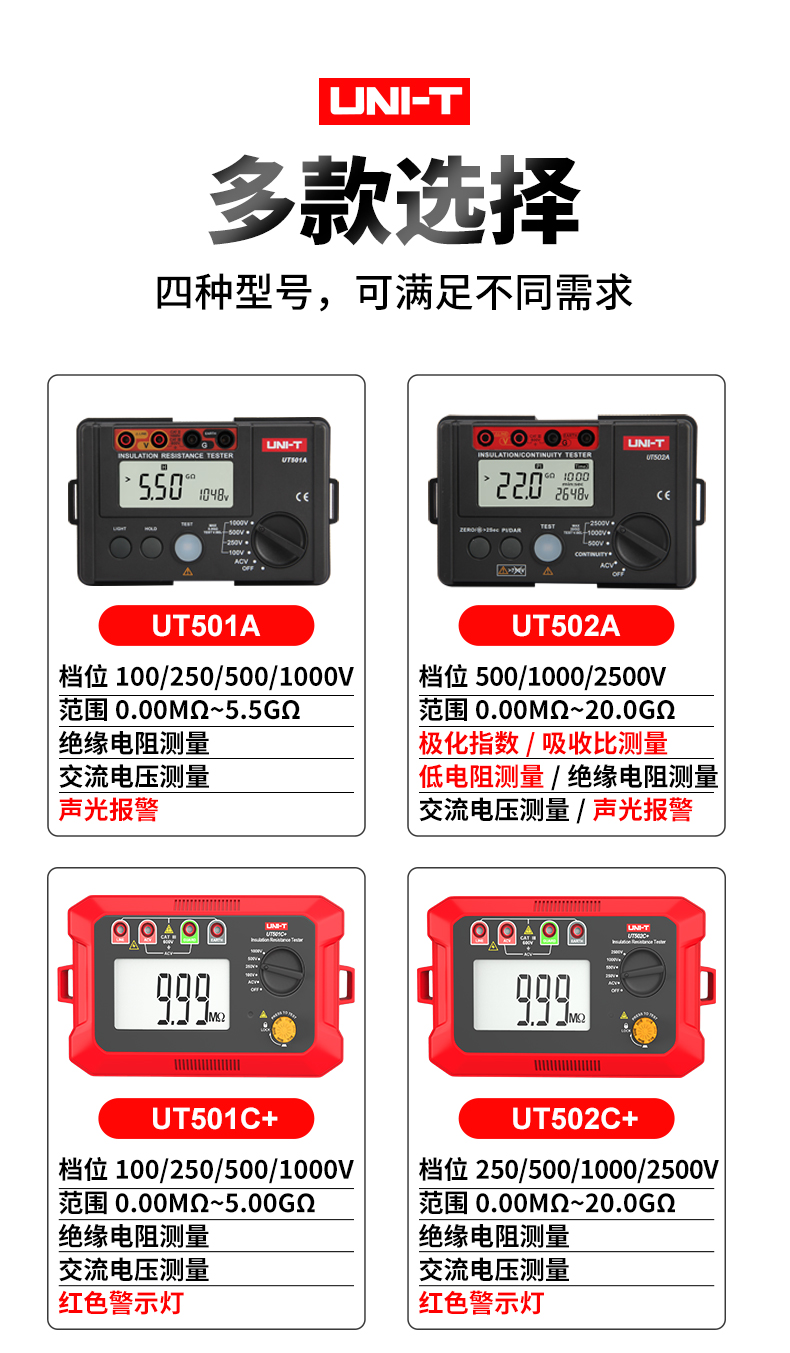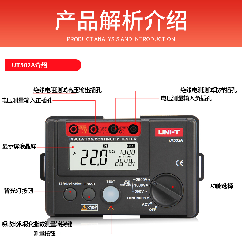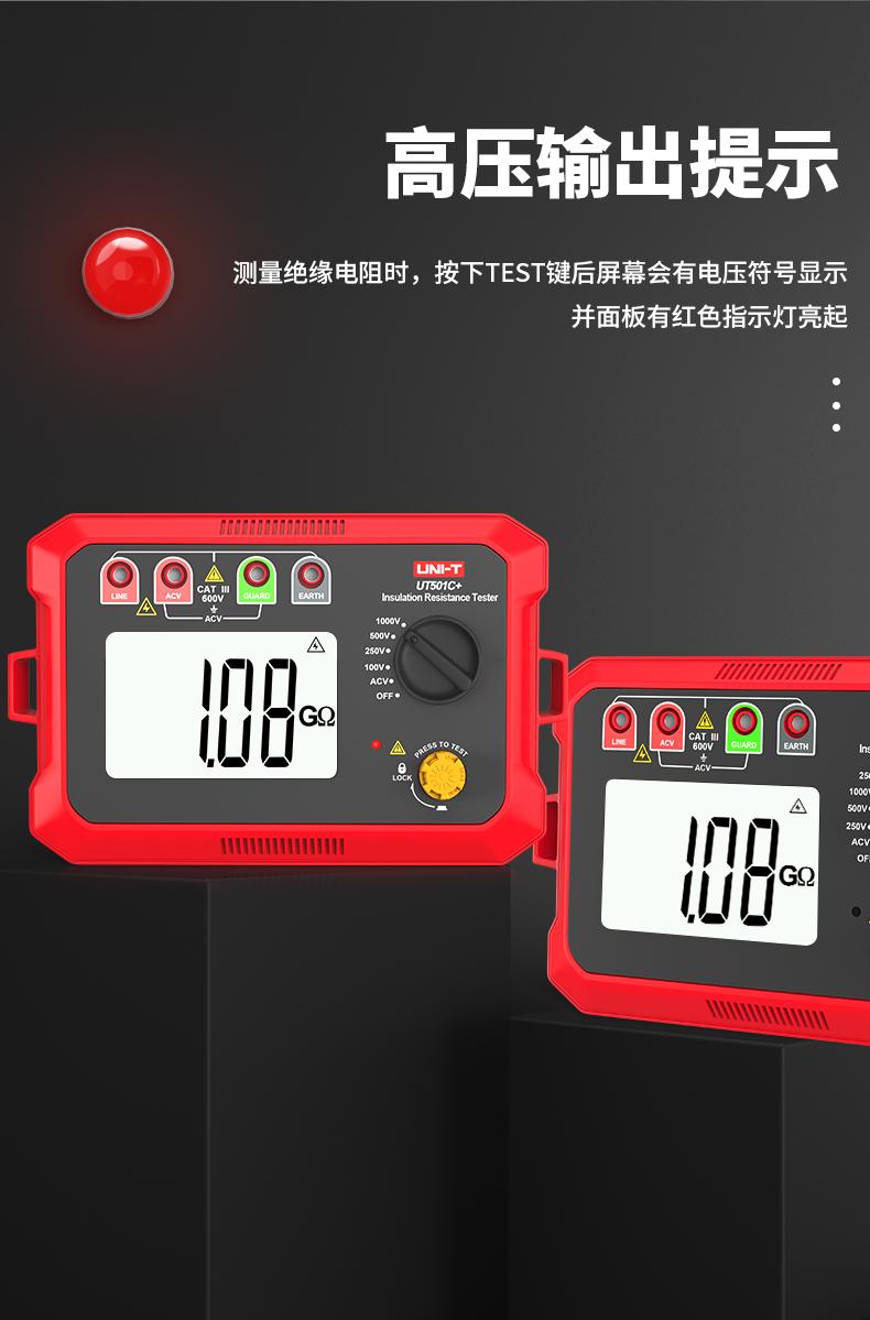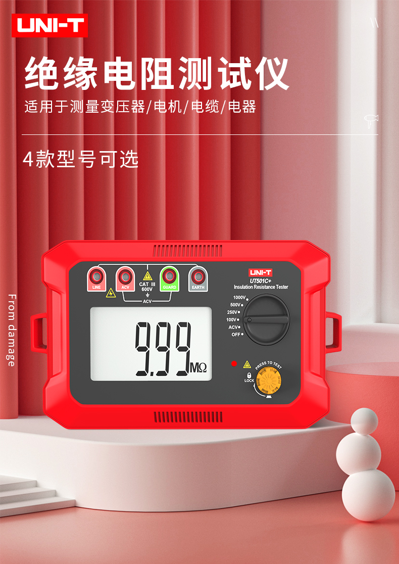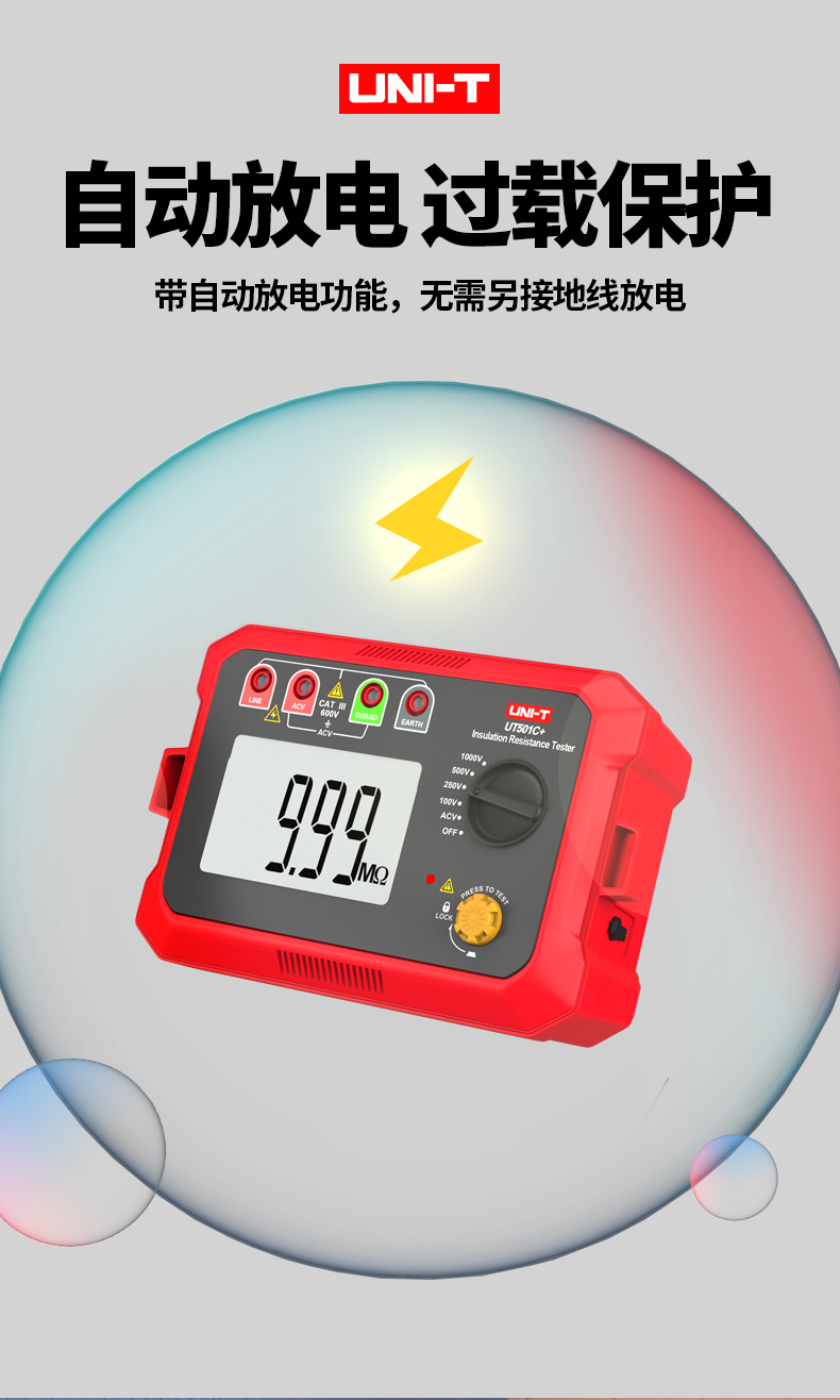 优利德(UNI-T)UT501A 数字式绝缘电阻测试仪 电子摇表 兆欧表 电工电阻表 UT501A电压100/250/500/1000V
