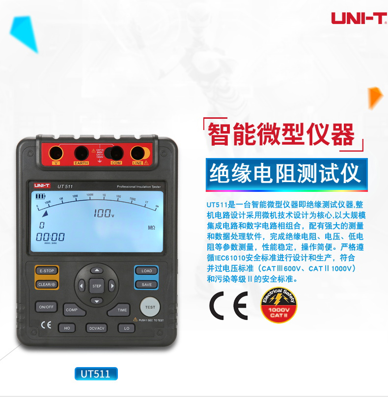 【官方直销】特惠优利德UT511/512/513绝缘电阻测试仪数字兆欧表 绝缘摇表 UT512
