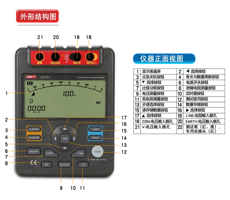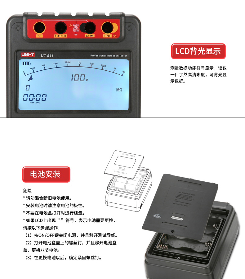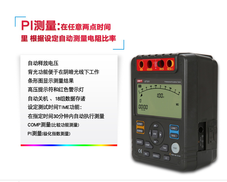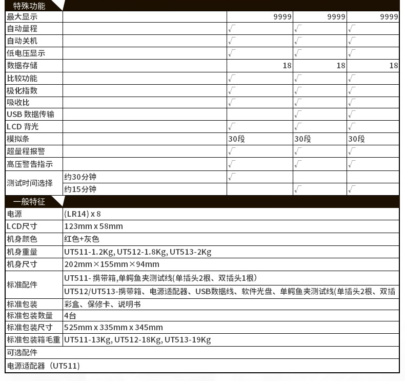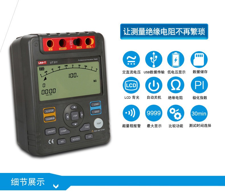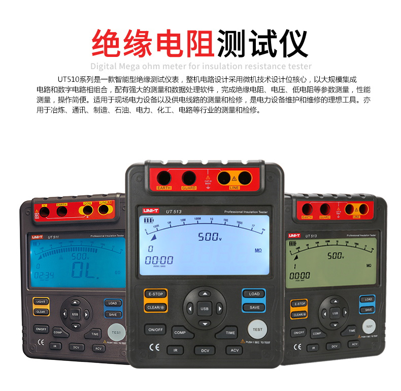 【官方直销】特惠优利德UT511/512/513绝缘电阻测试仪数字兆欧表 绝缘摇表 【UT513】