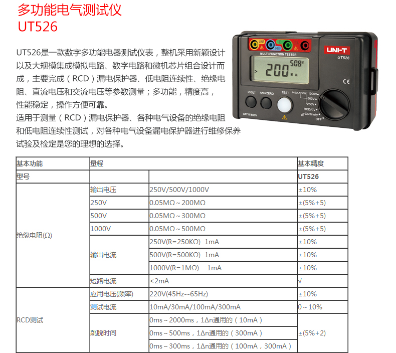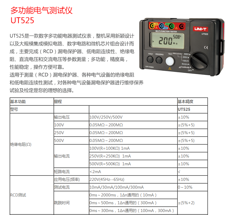 【官方直销】优利德UT525/UT526多功能电气测试仪漏电保护/低电阻/绝缘电阻 UT525