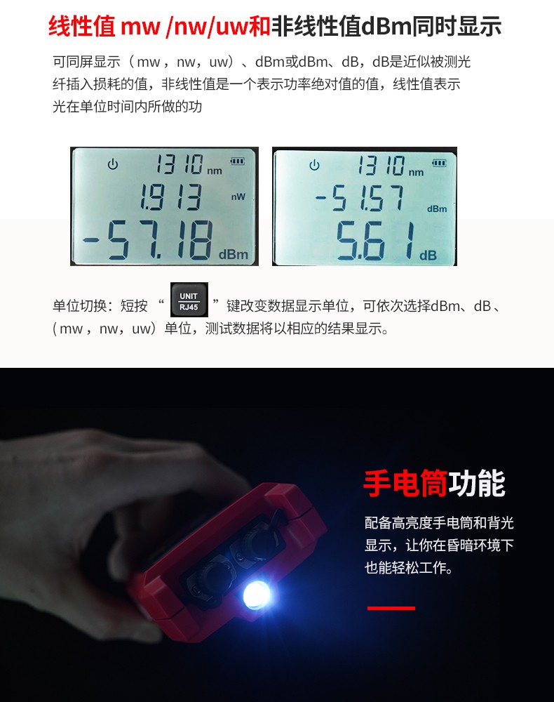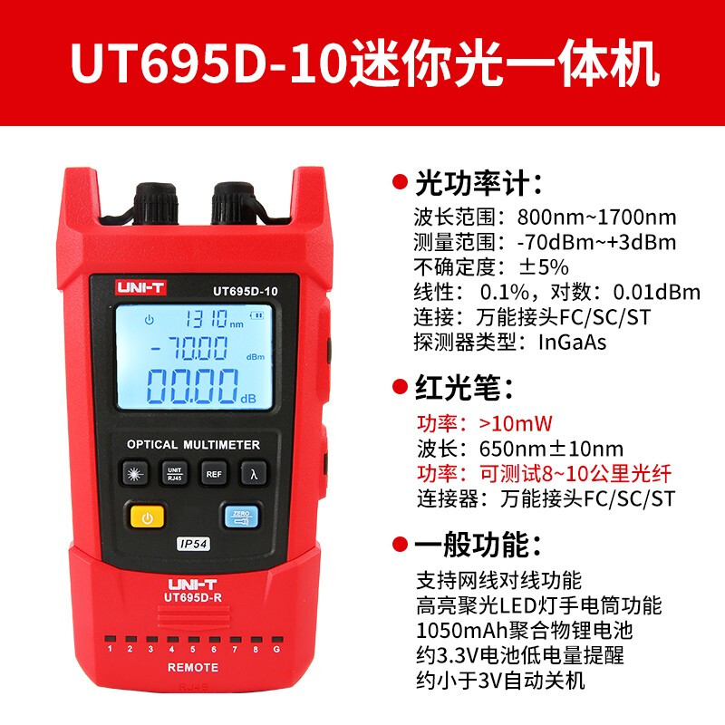 优利德UT695D迷你光一体机光功率计光纤测试红光笔网线对线测试仪 UT695D-10(网络对线+红光笔+光功率测试)