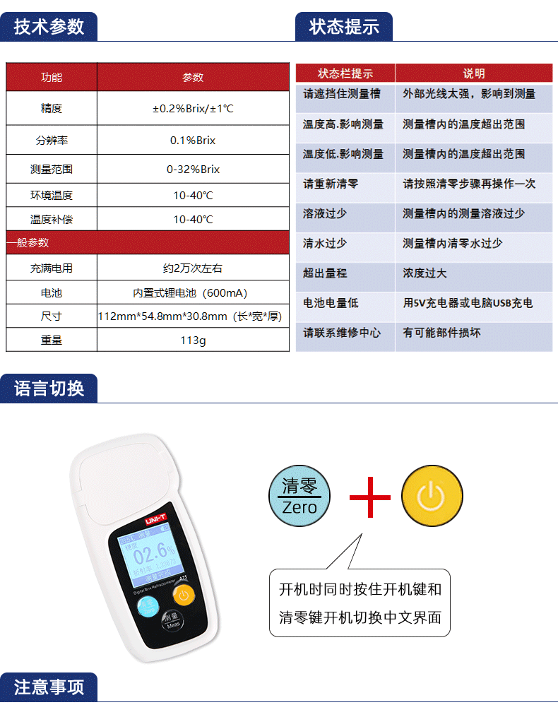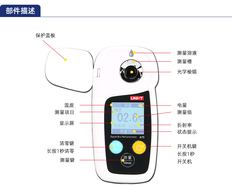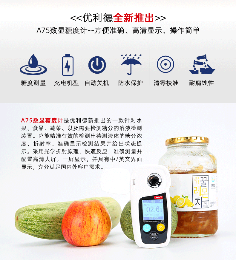 优利德A75数字式糖度计高精度水果测糖仪甜度测试糖分检测折光仪 A75
