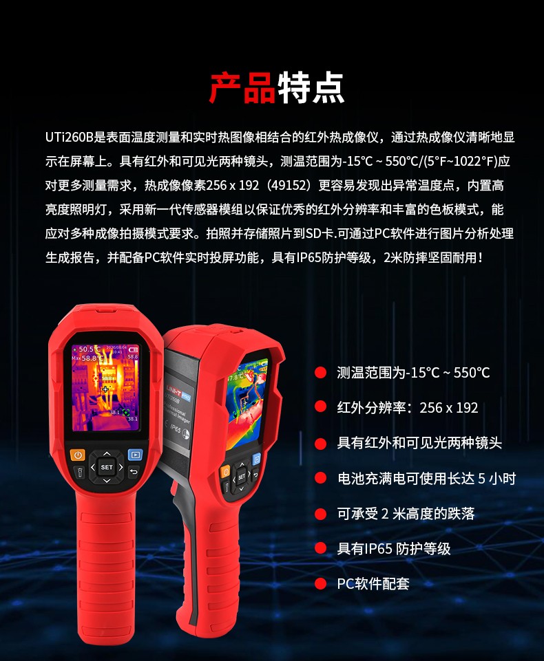 优利德UTi260B红外线热成像仪工业测温枪高精度电力地暖测温仪 UTi260B