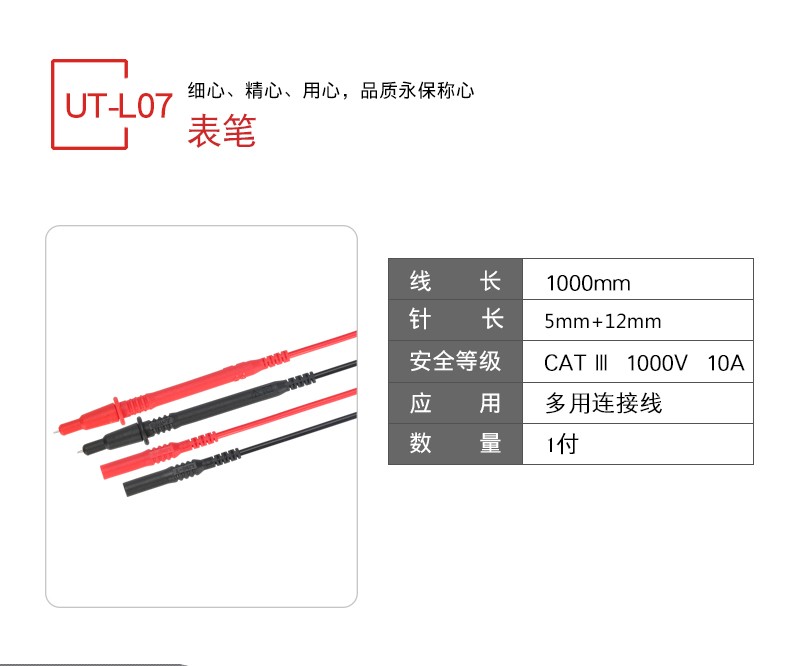 【官方直销】UNI-T优利德UT-L07直探尖测试线可试式探针调万用表表笔双重绝缘 UT-L07