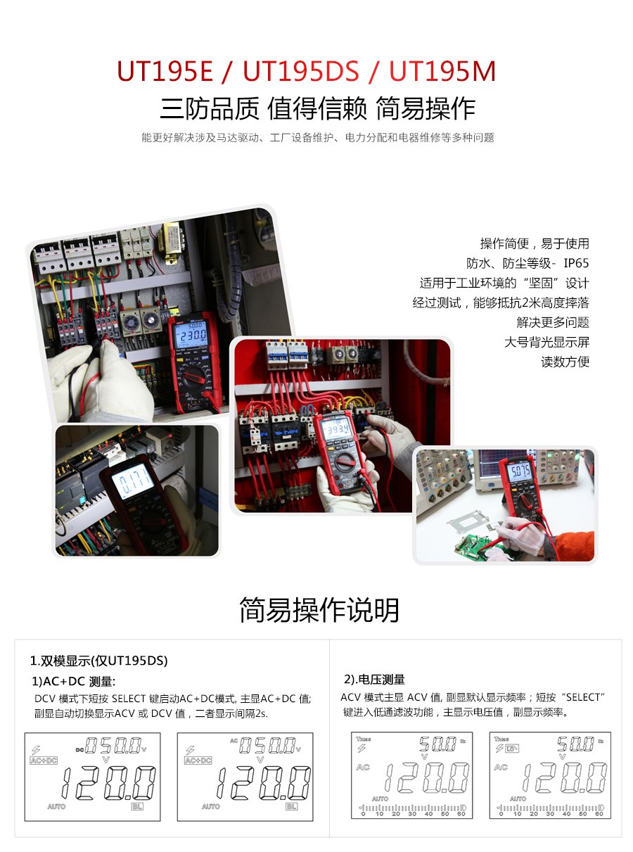 【官方直销】工业品优利德UT195DS数字高精度万用表数显式防烧多用表 UT195DS