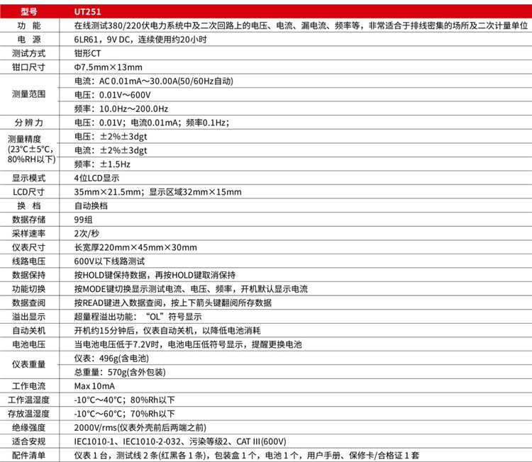 优利德UT251工业品钳形漏电流表高精度交流漏电流测量仪 UT251 MiNi