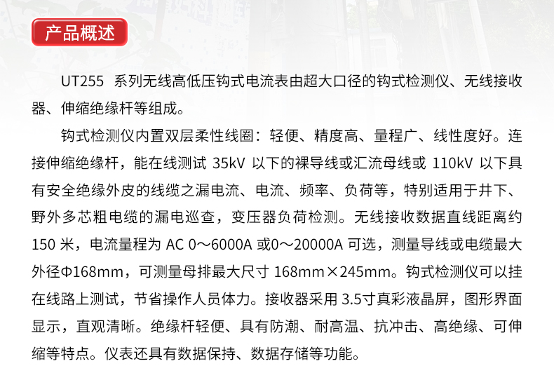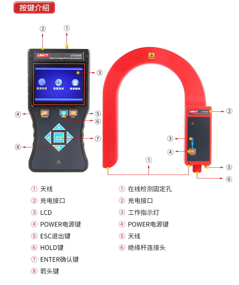 【官方直销】工业品优利德UT255D/UT255E无线高压钩式大电流表无线高压测试仪 UT255D
