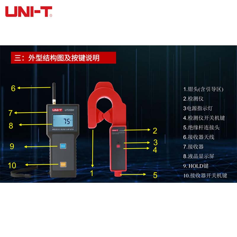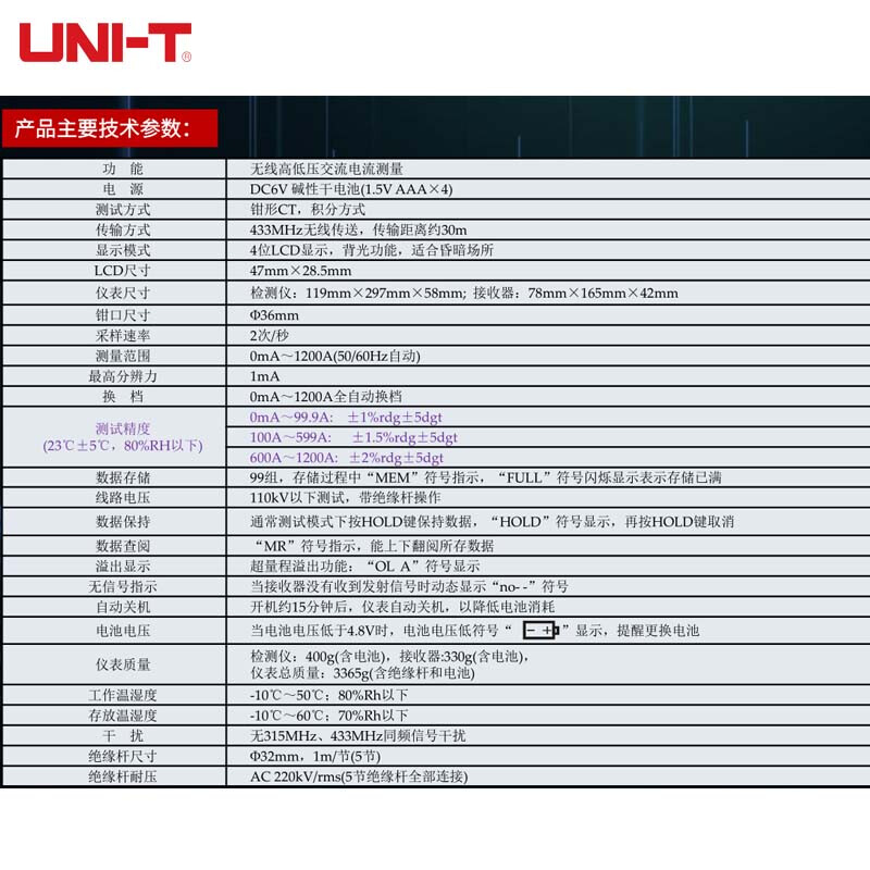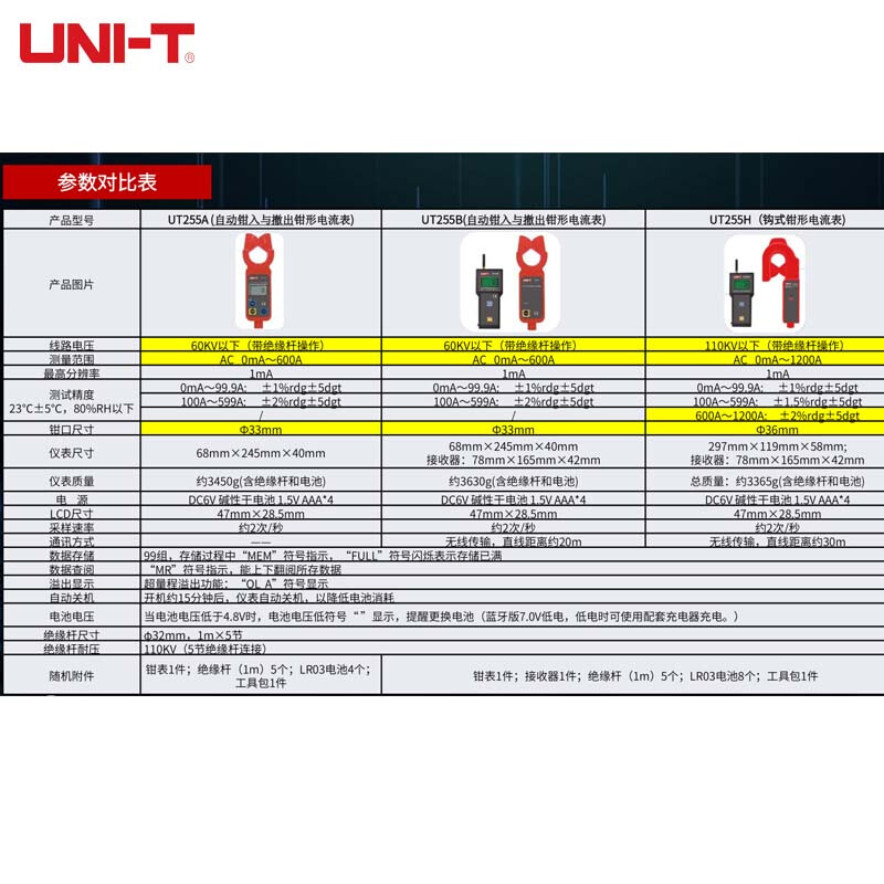 优利德(UNI-T)UT255H无线高低压钳形电流表 高低压交流电流测试表高精度漏电钳形电流表 UT255H