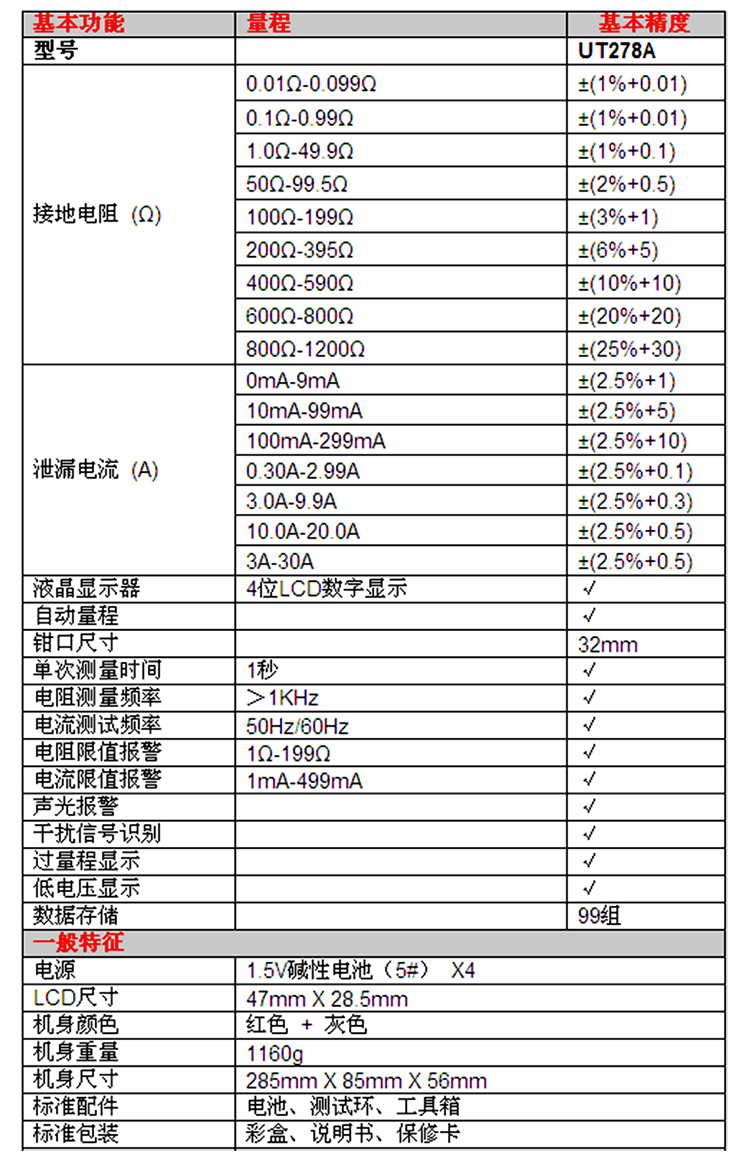 优利德(UNI-T) UT278A+ 钳形接地电阻测试仪