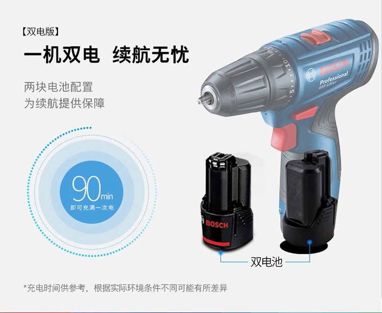 博世(BOSCH)电钻电动螺丝刀家用工具箱套装手电钻充电12V锂电钻 2.0Ah单电版(GSR120-LI)