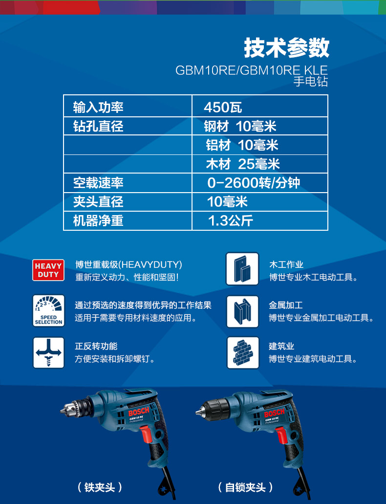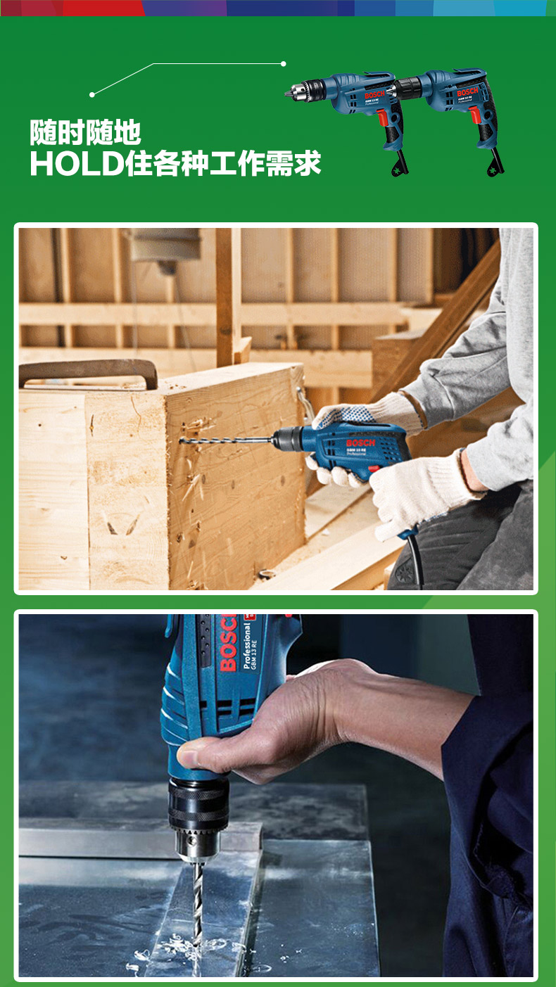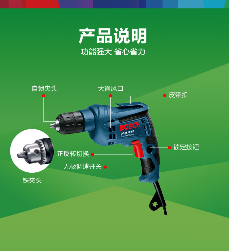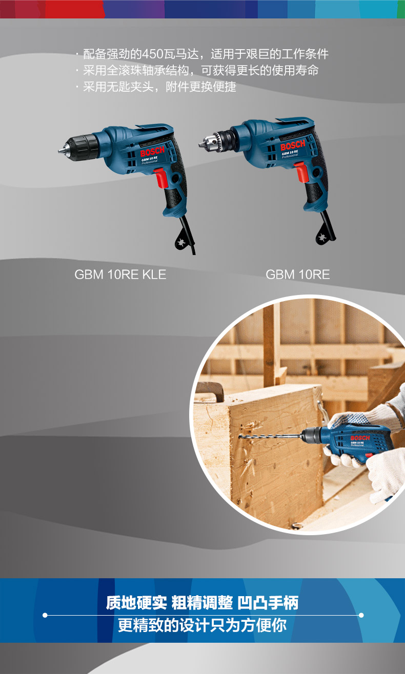 博世BOSCH手电钻GBM10RE KLE手紧自锁调速正反转10mm螺丝刀起子机电动工具 GBM10RE KLE【450W自锁】+官方标配