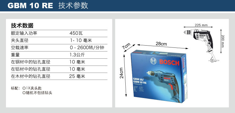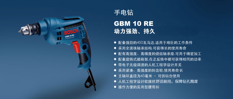 博世(BOSCH)GBM 10 RE 手电钻电动螺丝刀手枪钻 450瓦插电式 正反转无极变速 工业级
